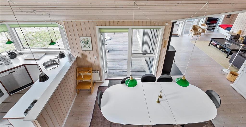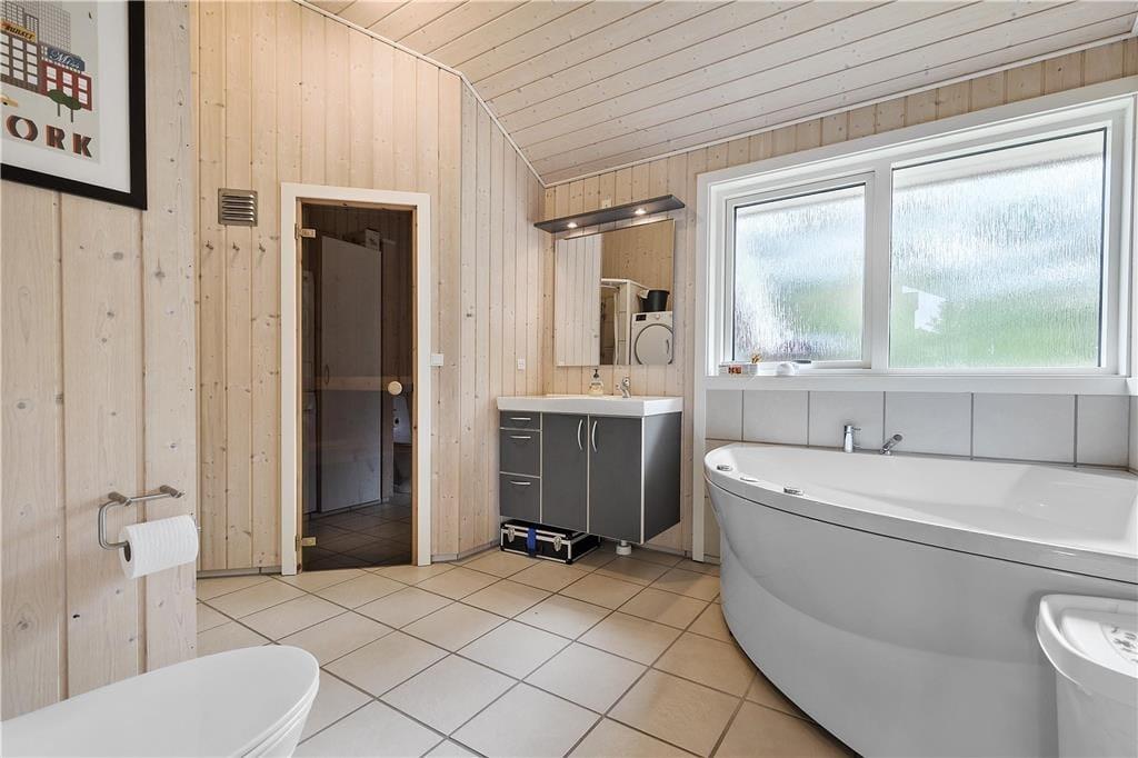 I det flotte og rummelige feriehus har du god plads til hele familien. Hvis du har taget dit yndlingsspil med, kan du se om du kan slå resten af familien, mens I nyder aftenstunden ved spisebordet med kaffe og hjemmebag. Her er det ideelle hus hvad enten du kommer om sommeren eller om vinteren. På en kold efterårsdag er en tur i saunaen oplagt, og måske kan en tur i spabadet nydes efter en tur i skoven.