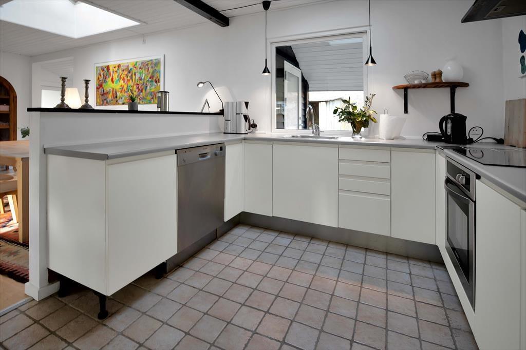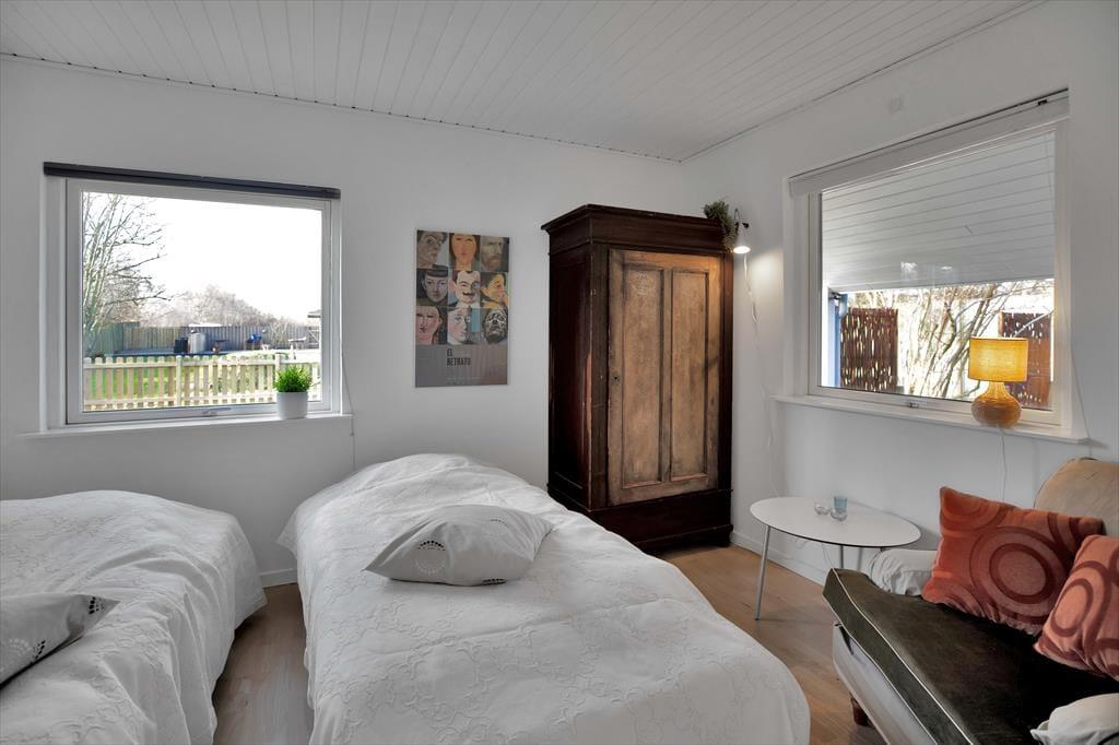 Huset indeholder stor stue med spiseplads til 6. Der er brændeovn og TV samt en masse spil til hyggelige aftener. Derudover er der 3 gode værelser med dobbeltsenge og god skabsplads. Køkkenet er åbent og indeholder bl.a. opvaskemaskine. Det fine badeværelse er med brus. Vaskemaskine og tørretumbler er placeret i entreen. Fra stuen er der udgang til den dejlige have, hvor rådyrene jævnligt krydser og hvor der er flere dejlige terrasser både overdækkede og åbne.
