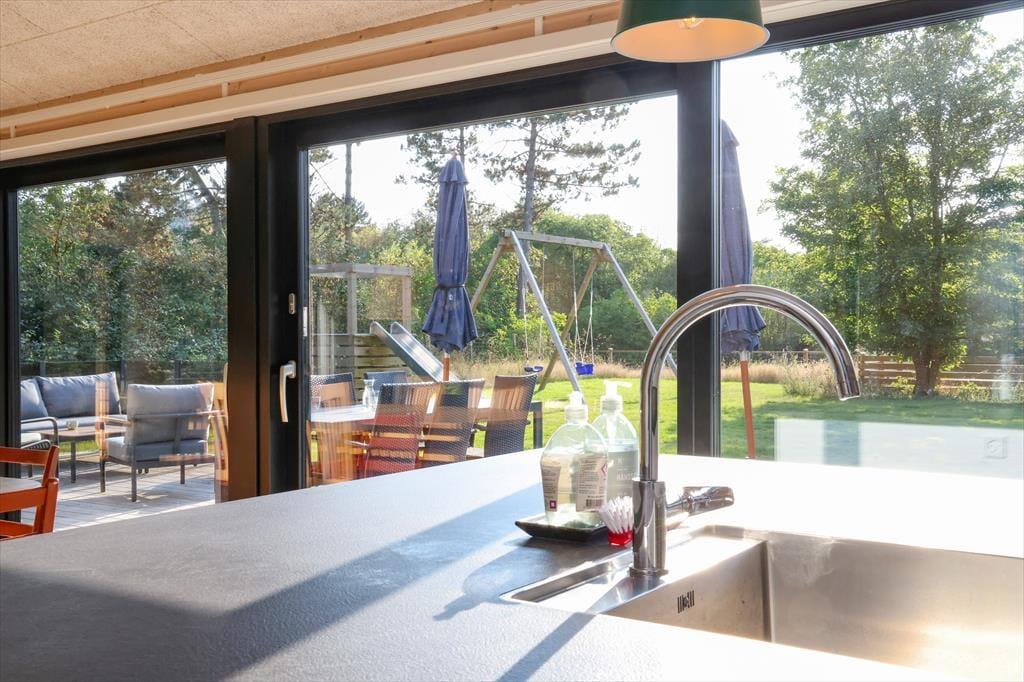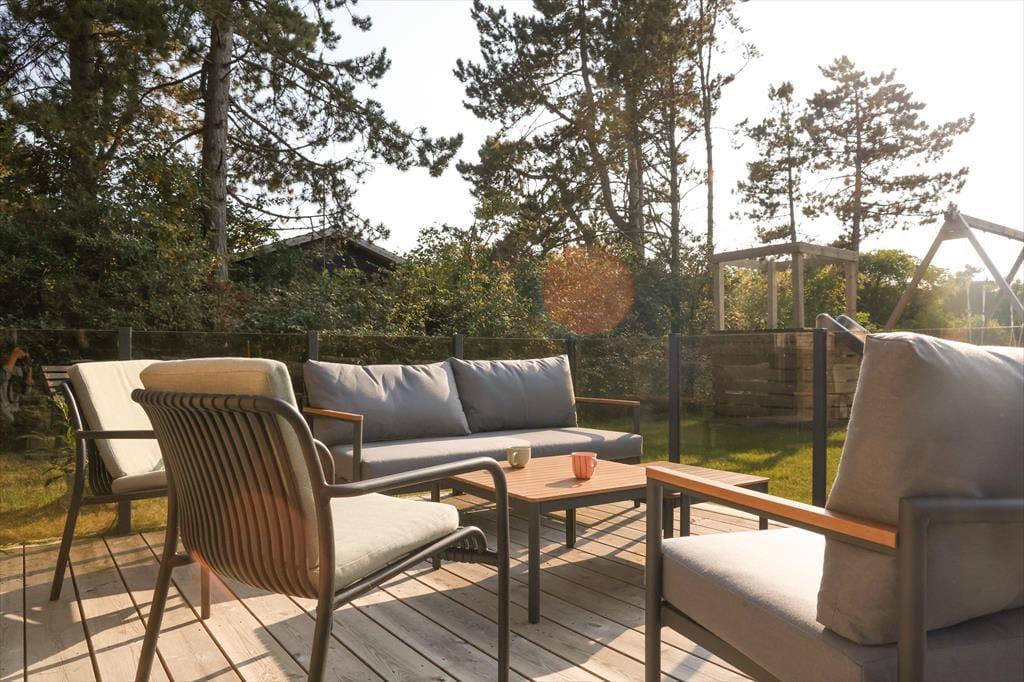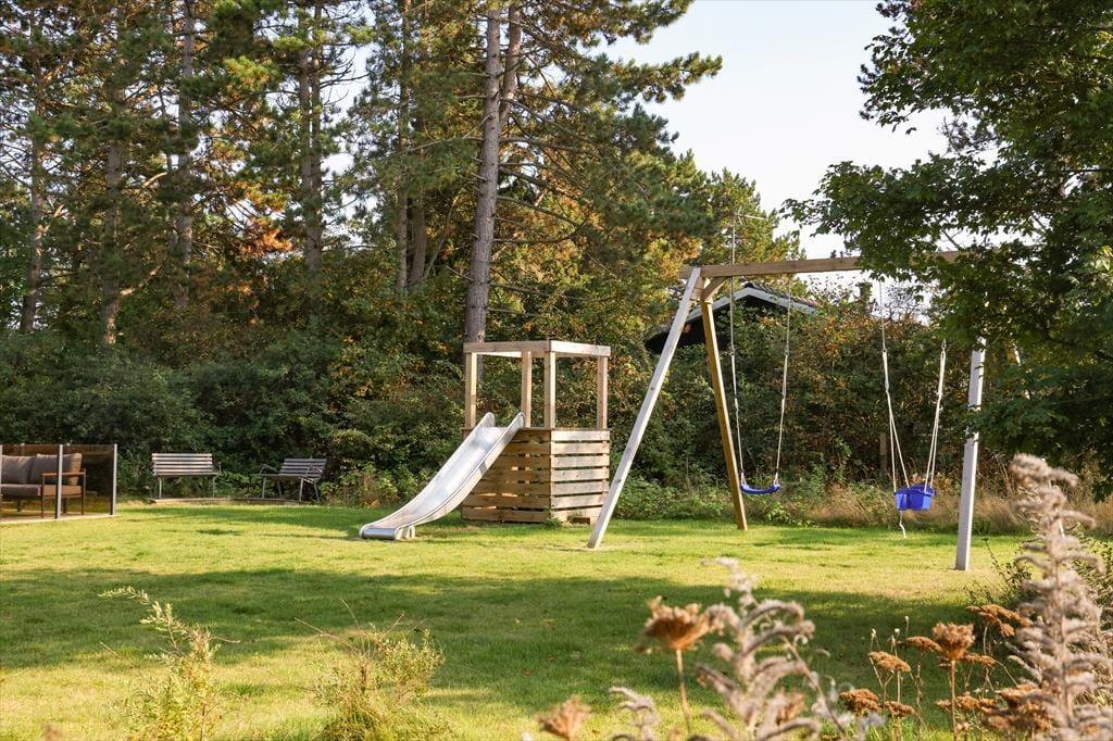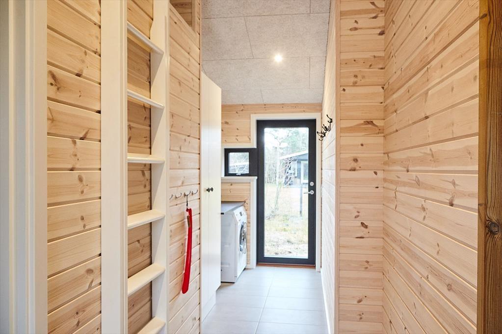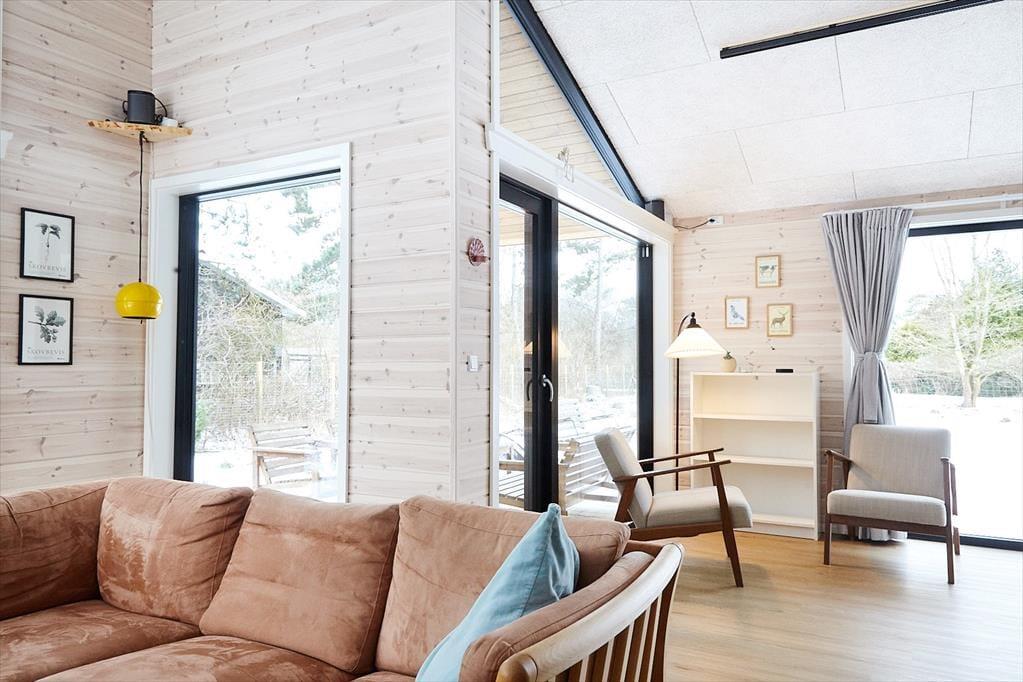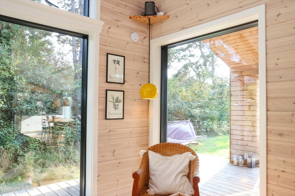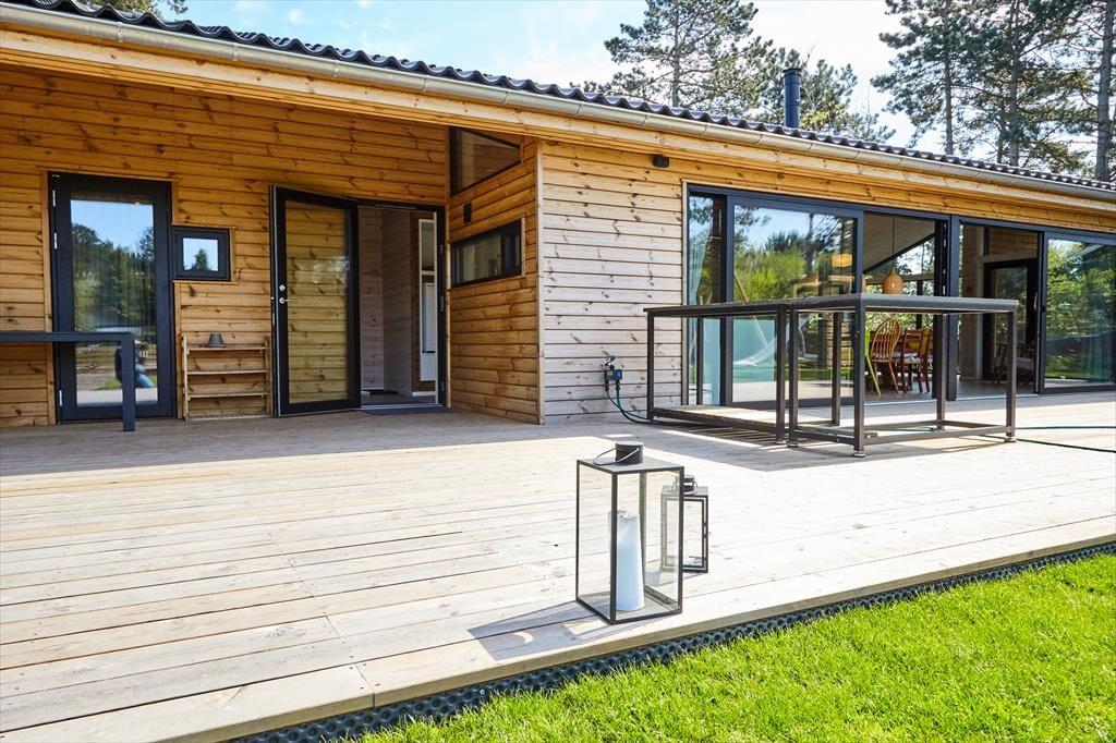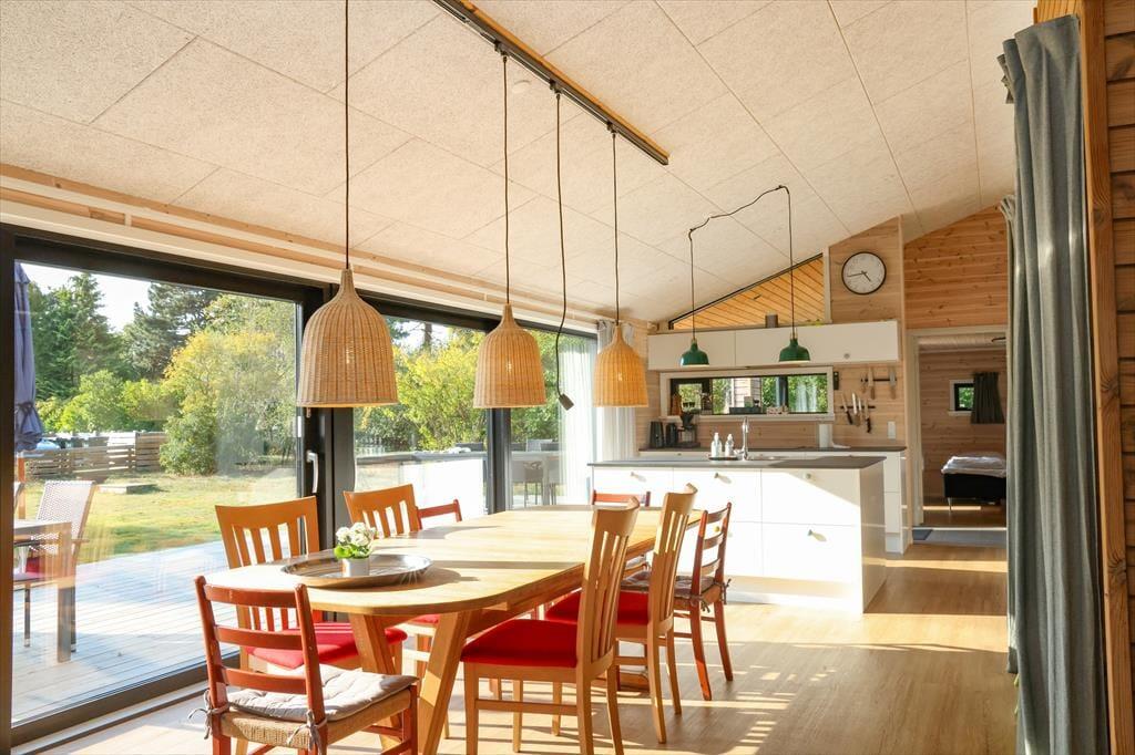 Huset er indrettet med entré, hvor der også er vaskemaskine og tørretumbler. Stort soveværelse med dobbeltseng og adgang til badeværelse. I entré er der adgang til hems med 2 sovepladser. Stort lyst køkken-alrum med god spiseplads, hyggekrog, og udgang til stor træterrasse. Soveværelse med køjeseng. Badeværelse. Soveværelse med dobbeltseng. Stue med brændeovn, TV (kun streaming), og udgang til overdækket terrasse. Herudover er haven anlagt med græsplæne og naturgrund for biodiversitetens skyld i den resterende del.
