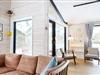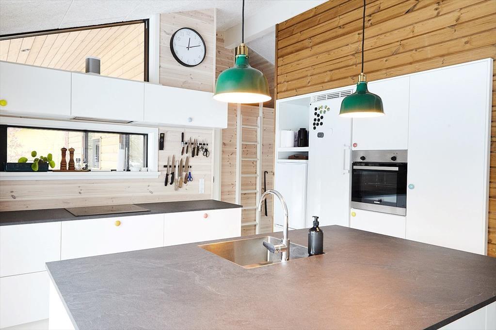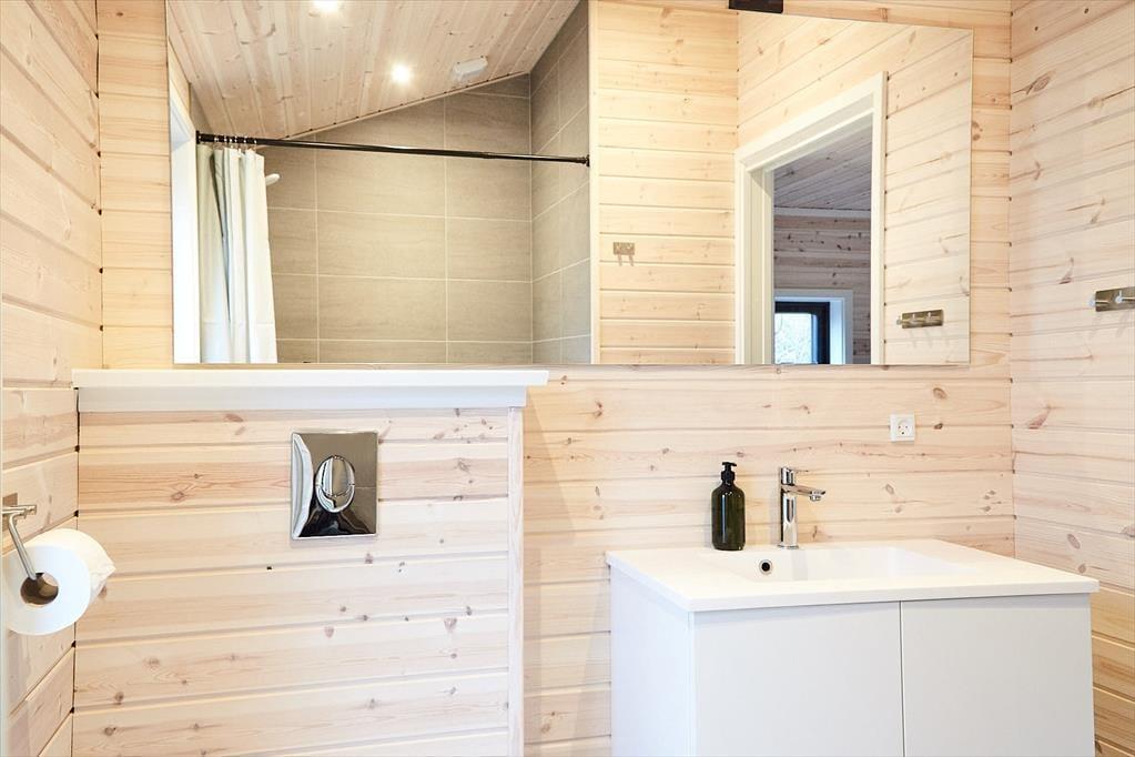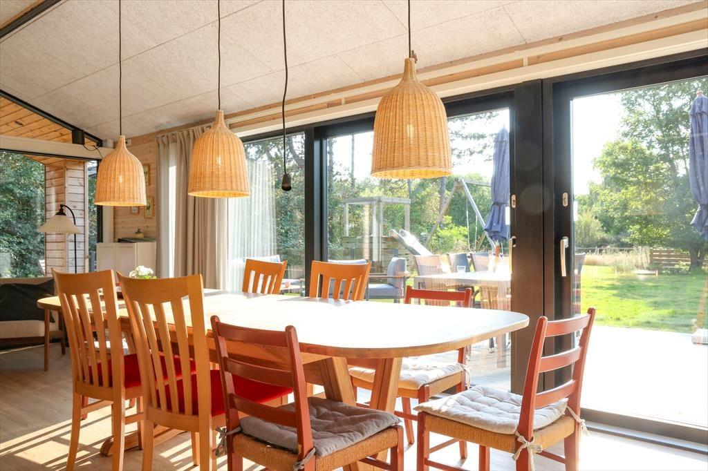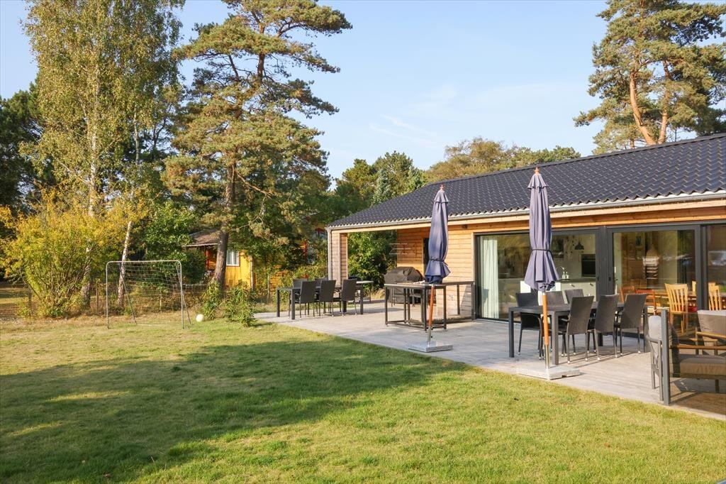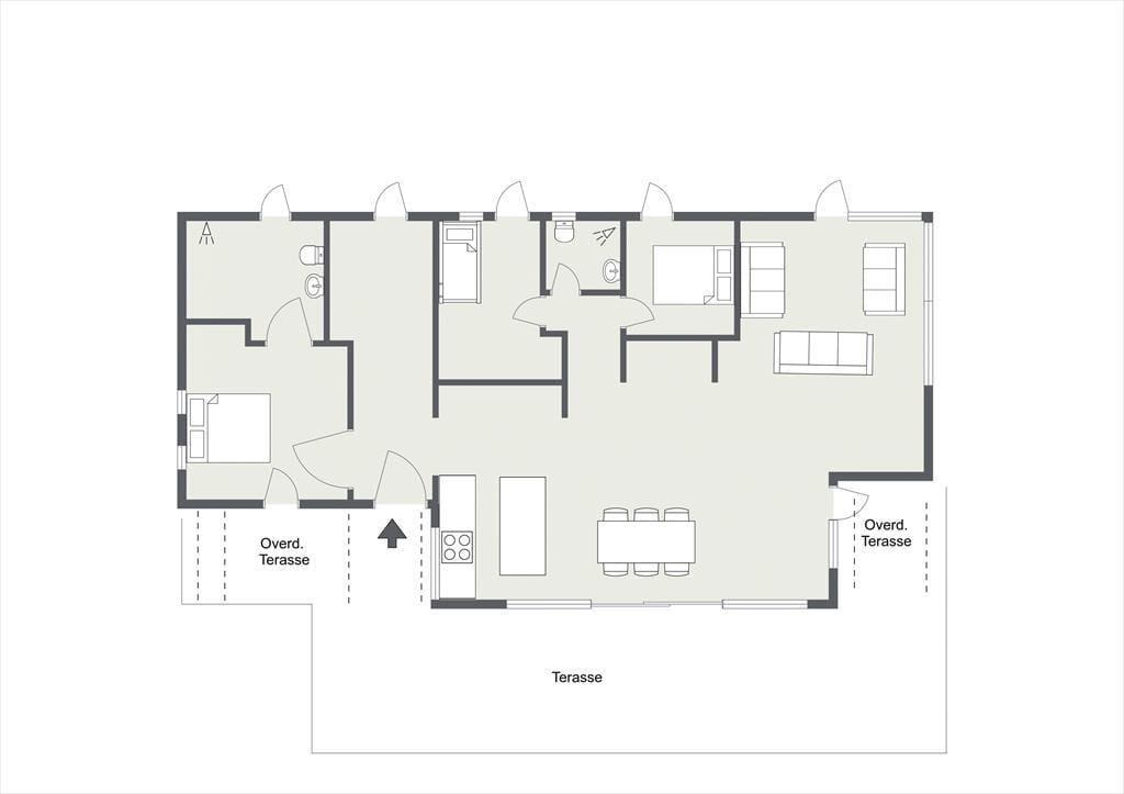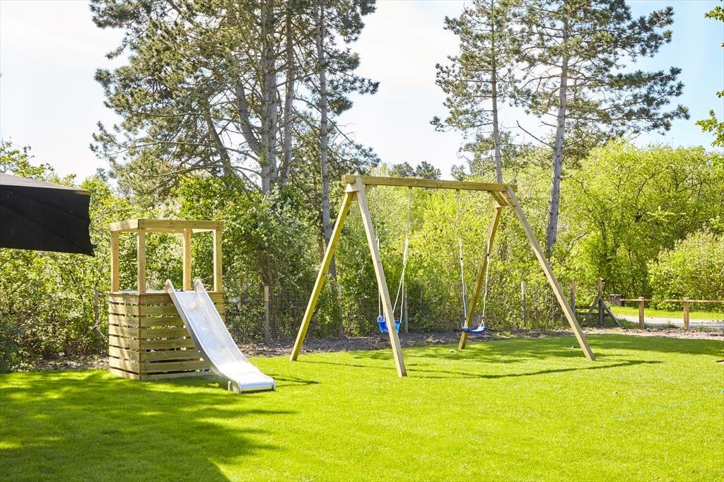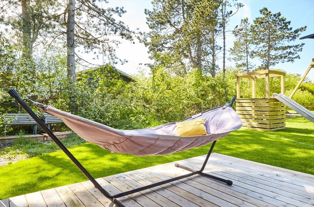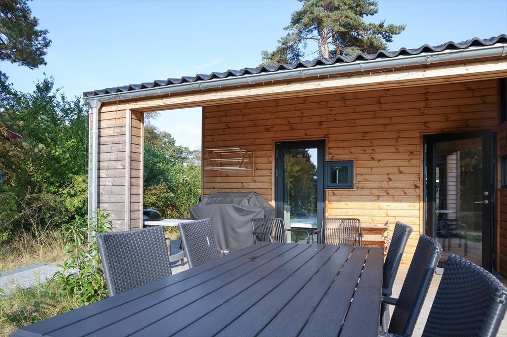 Huset er indrettet med entré, hvor der også er vaskemaskine og tørretumbler. Stort soveværelse med dobbeltseng og adgang til badeværelse. I entré er der adgang til hems med 2 sovepladser. Stort lyst køkken-alrum med god spiseplads, hyggekrog, og udgang til stor træterrasse. Soveværelse med køjeseng. Badeværelse. Soveværelse med dobbeltseng. Stue med brændeovn, TV (kun streaming), og udgang til overdækket terrasse. Herudover er haven anlagt med græsplæne og naturgrund for biodiversitetens skyld i den resterende del.