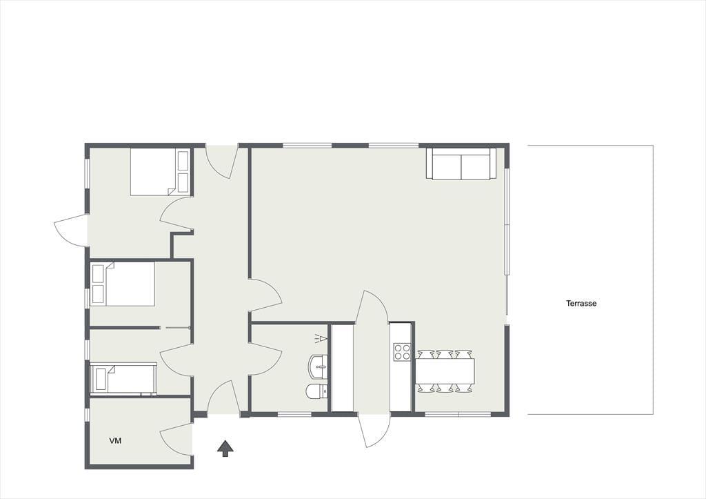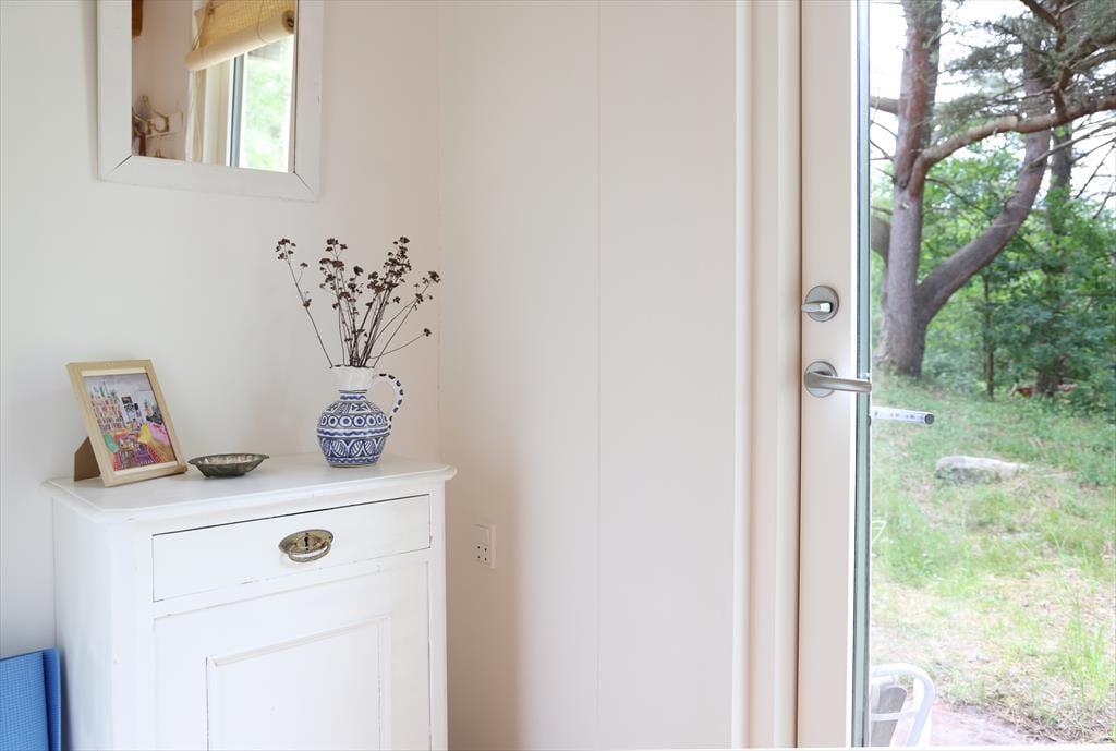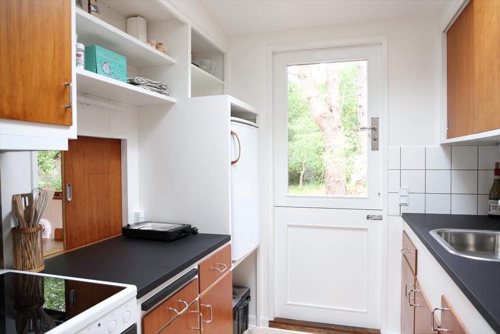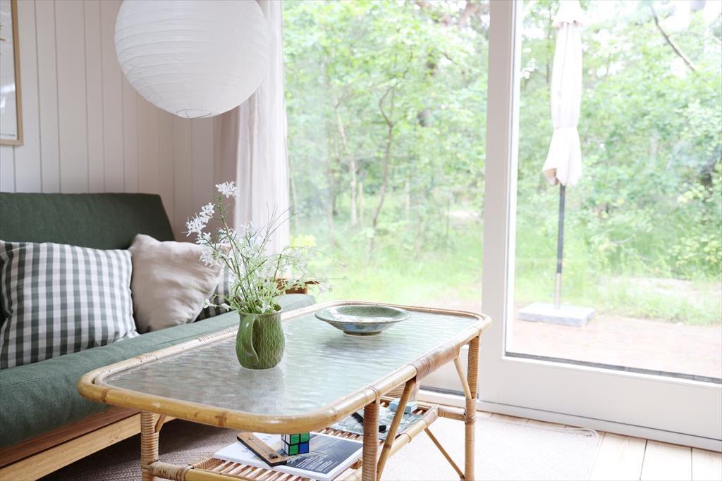 Sommerhuset er beliggende i et roligt område, så der er rig mulighed for at sidde i ro og mag og nyde en god frokost på terrassen. Den store terrasse med udgang fra stuen er sydvest-vendt så kommer masser af sol eftermiddag og aften. Udendørs kan timerne gå for børnene med at klatre i træer, lege gemmer eller fanger, og når det bliver tid til en dukkert, så er den rigtig gode sandstrand kun få minutters gang fra huset.