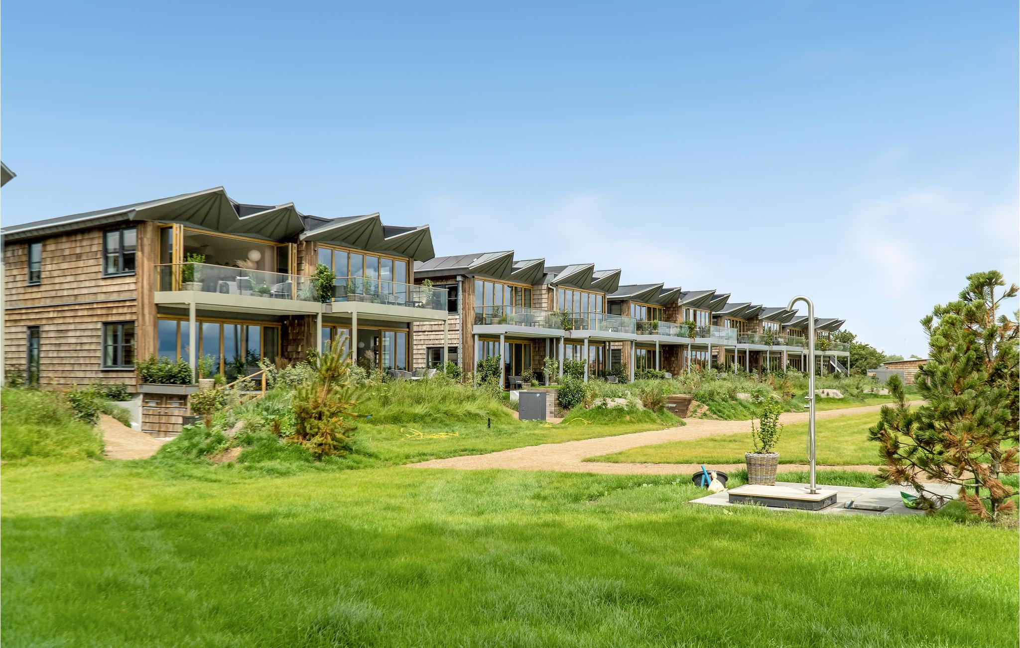 Sæt jer på altanen og planlæg dagens gøremål. Efter en tur til stranden kan I benytte jer af stedets udebruser til at skylle sandet af. Der er kun 25 meter ned til vandet, så mon ikke en god del af jeres ferie kommer til at blive brugt på strandlivets glæder. Hvis I trænger til at strække benene, er I naboer til en række faciliteter, lige fra minigolf til legeplads og en iskiosk.