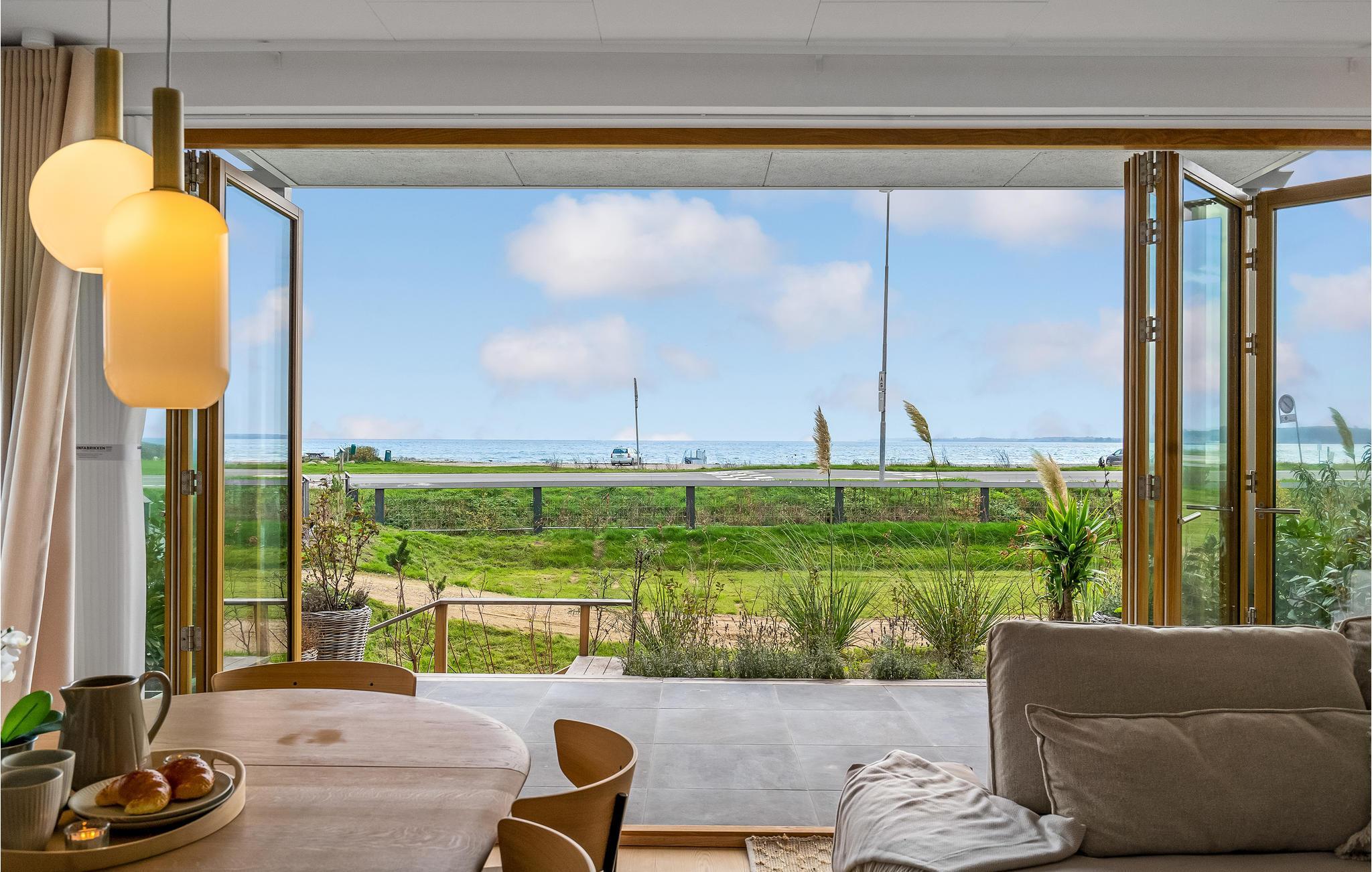 Toplækker ferielejlighed ved Kertemindebugten med panoramaudsigt, strand kun 25 m væk og moderne faciliteter.