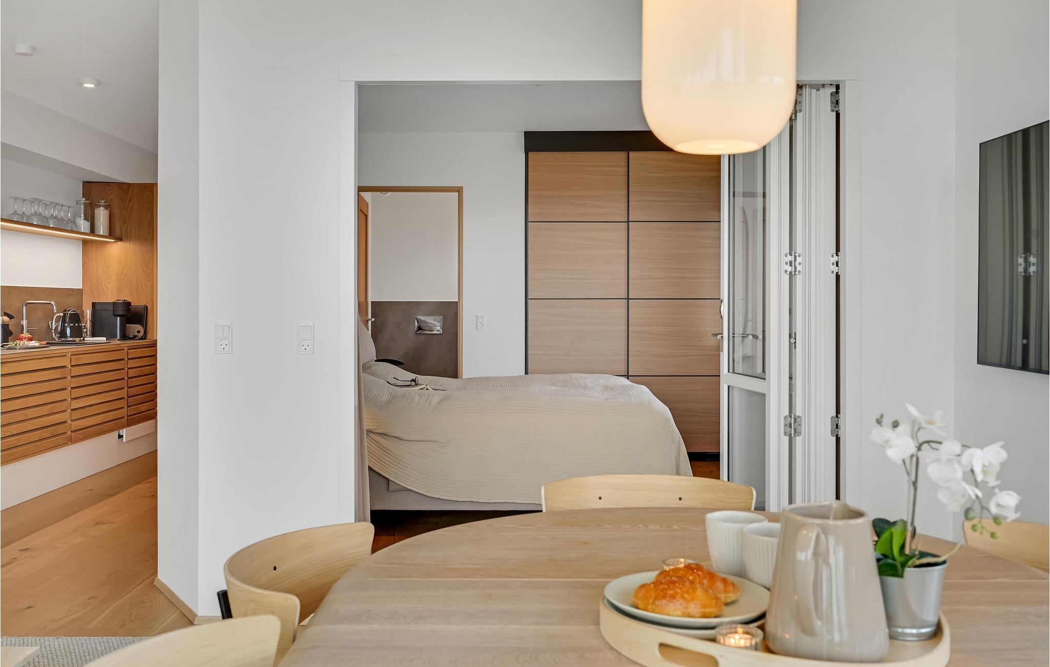 Der er lagt op til nogle fantastiske dage på Fyn, hvor I kan se frem til en helt igennem vidunderlig beliggenhed ved Kertemindebugten. Her ligger denne flotte lejlighed, som er indrettet med gode kvalitetsløsninger overalt. Der er lagt vægt på naturmaterialer samt en behagelig farveskala og store lysindfald fra vinduerne, så I får en rolig og harmonisk ramme om jeres ophold. Bedst af alt er den forrygende udsigt til bugtens blå vand, som kan I kan beundre over madlavningen, mens I flader ud i stuen, og når I drikker en kop kaffe på altanen om morgenen.