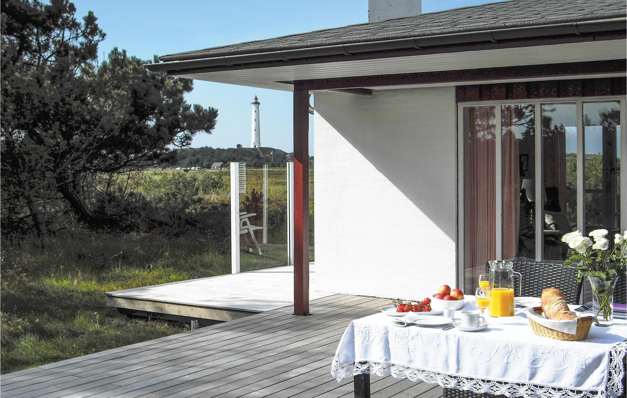 Charmerende sommerhus med sauna, spabad og havudsigt ved Nr. Lyngvig Fyr i første række til klitområdet.