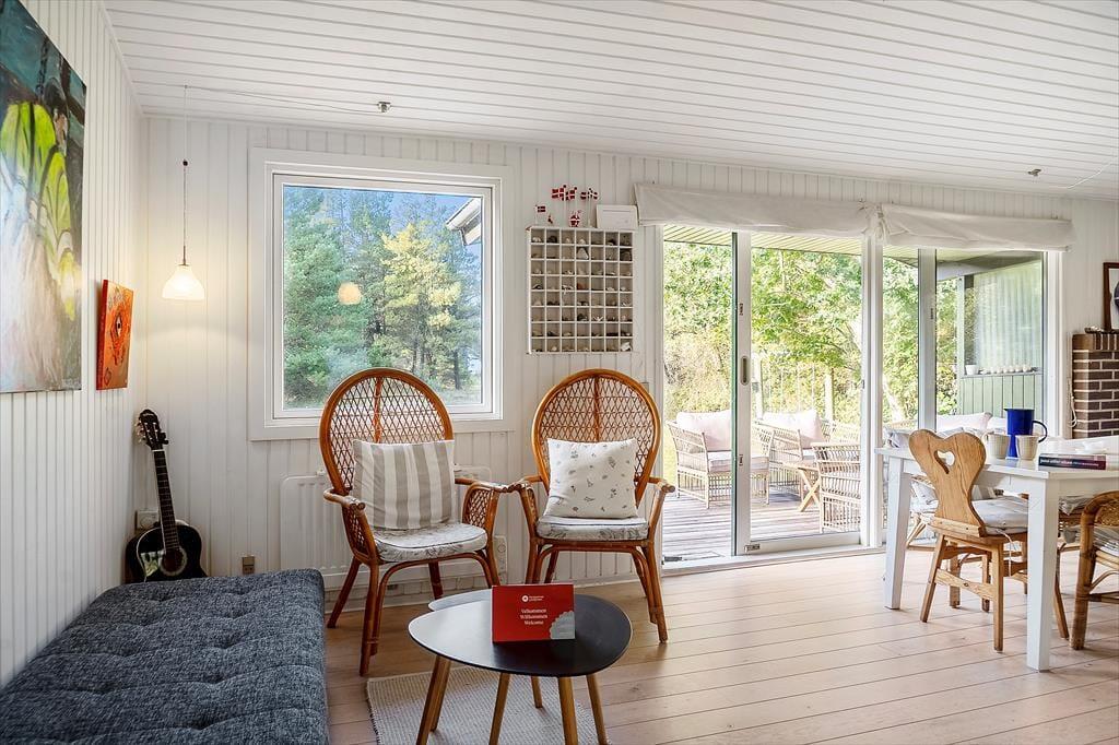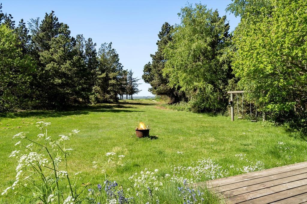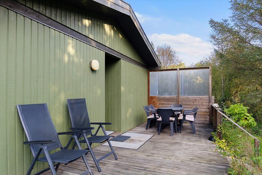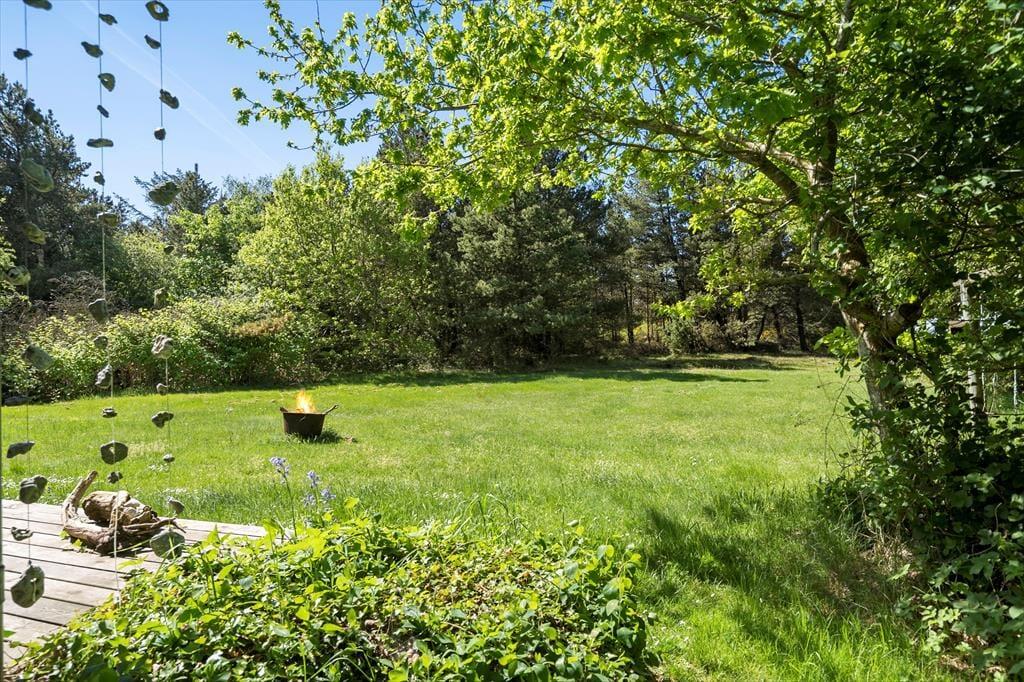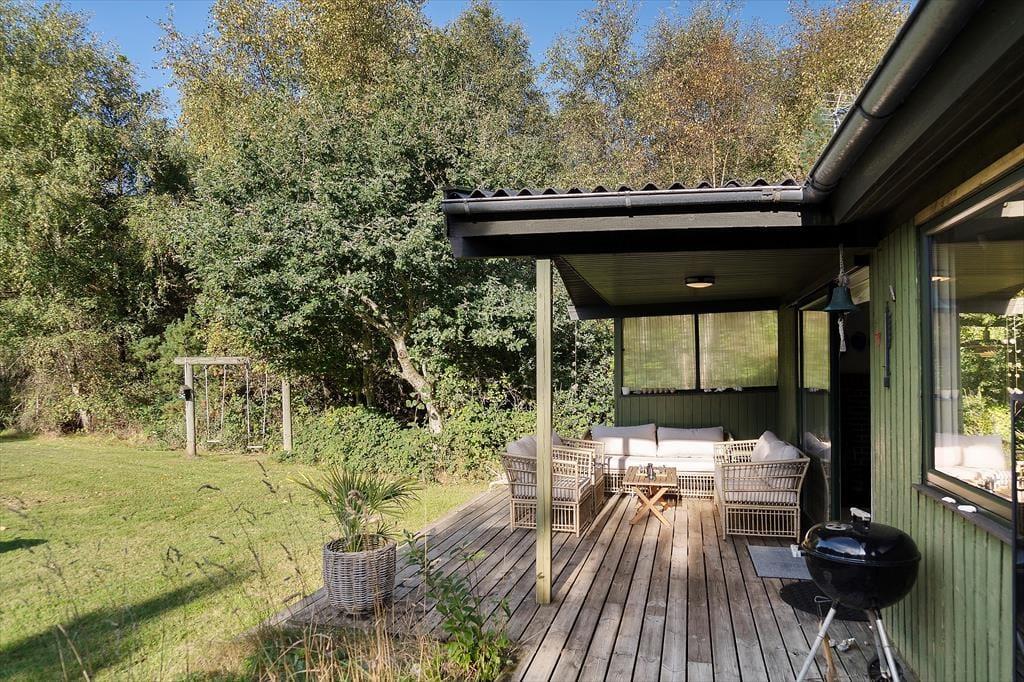 På den 4175 m2 store naturgrund har I masser af plads til at slappe af, lege og nyde ferielivet i ugenerede og fredfyldte rammer. Når I vil tage den med ro, kan I slå jer ned på terrasserne omkring huset. De er delvist afskærmede, så der er god chance for at finde læ, og I kan vælge frit mellem at sidde under åben himmel eller inde under overdækningen. Både fra terrassen og græsplænen kan I se til vandet, og I skal stort set bare gå ned for enden af grunden, før I står på stranden.