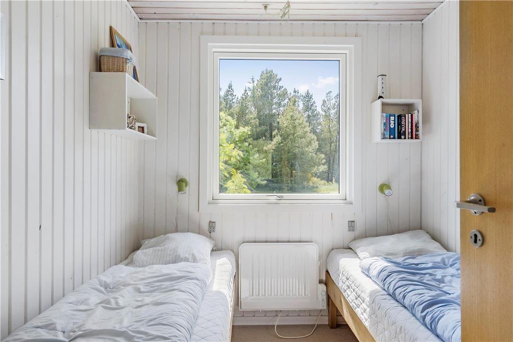 Der er kun cirka 100 meter fra sommerhuset og til Limfjorden, og inden døre har I udsigt til vandet mellem naturgrundens høje træer. Det er noget særligt at kunne vågne til så skønt et syn – og mon ikke der også er fuglekvidren fra trætoppene, når I åbner vinduet på klem. I den ene ende af det 87 m2 store sommerhus ligger tre soveværelser, der i alt har seks sengepladser, og et badeværelse med bruser, vaskemaskine og tørretumbler ligger også her. Den anden halvdel af huset er dedikeret til en dejlig stue med åbent køkken, loft til kip og direkte adgang til terrassen og haven. Her er både brændeovn og varmepumpe, hvis I trænger til at skrue op for varmen – og på de solbeskinnede sommerdage kan I omvendt sætte varmepumpen til at køle.