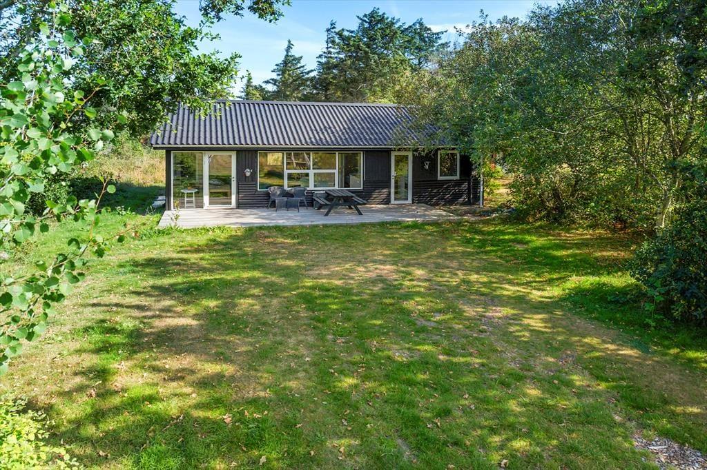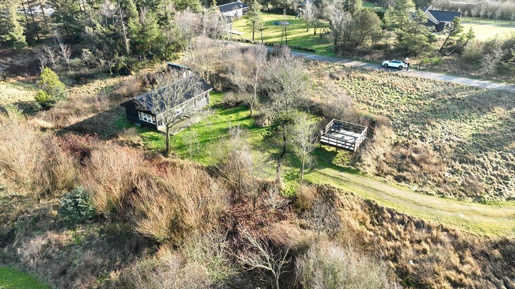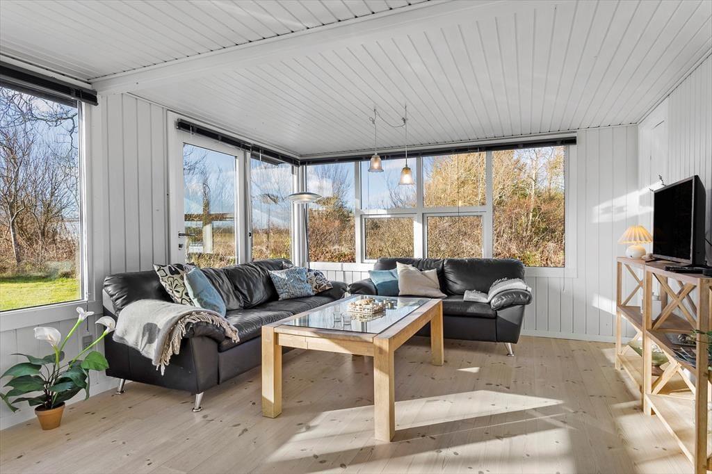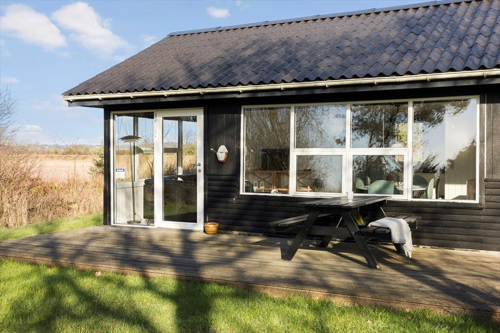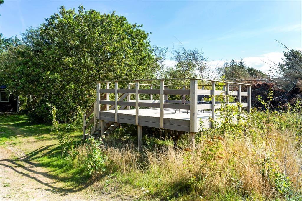 På den 3230 m2 store grund ligger der en dejligt solrig træterrasse lige sydvest for sommerhuset. Her kan I rigtigt slappe af i havemøblerne i løbet af dagen, og når aftenen nærmer sig, kan I starte grillen og gøre klar til et udendørs festmåltid. Solskinstimerne kan også nydes i loungen på husets udsigtsplatform, hvorfra I har det fineste vue over Nissum Bredning.