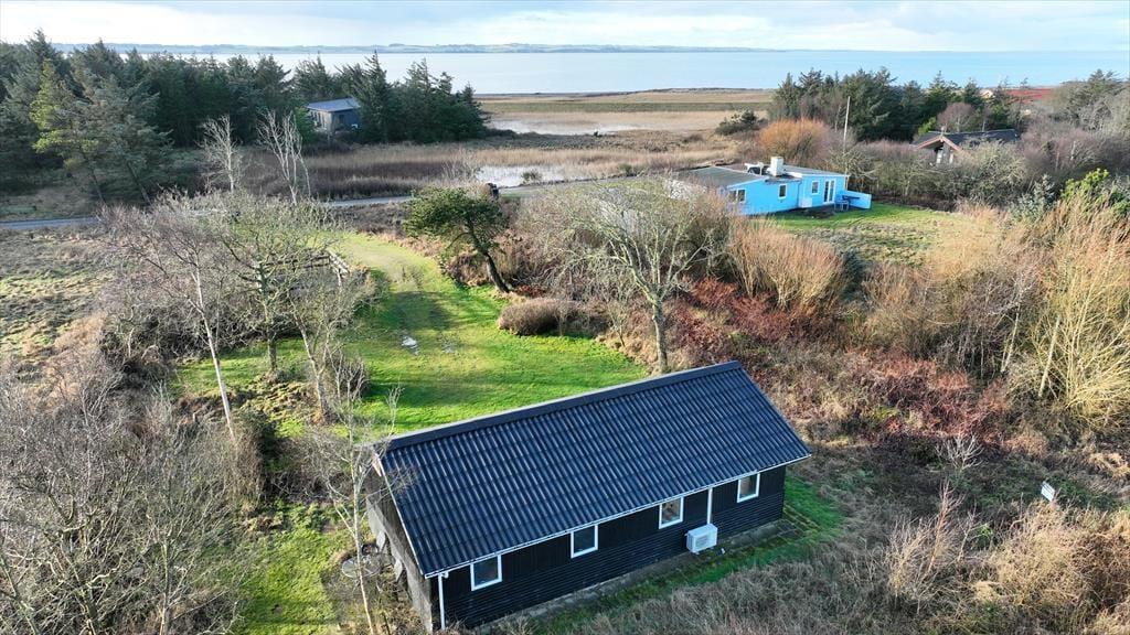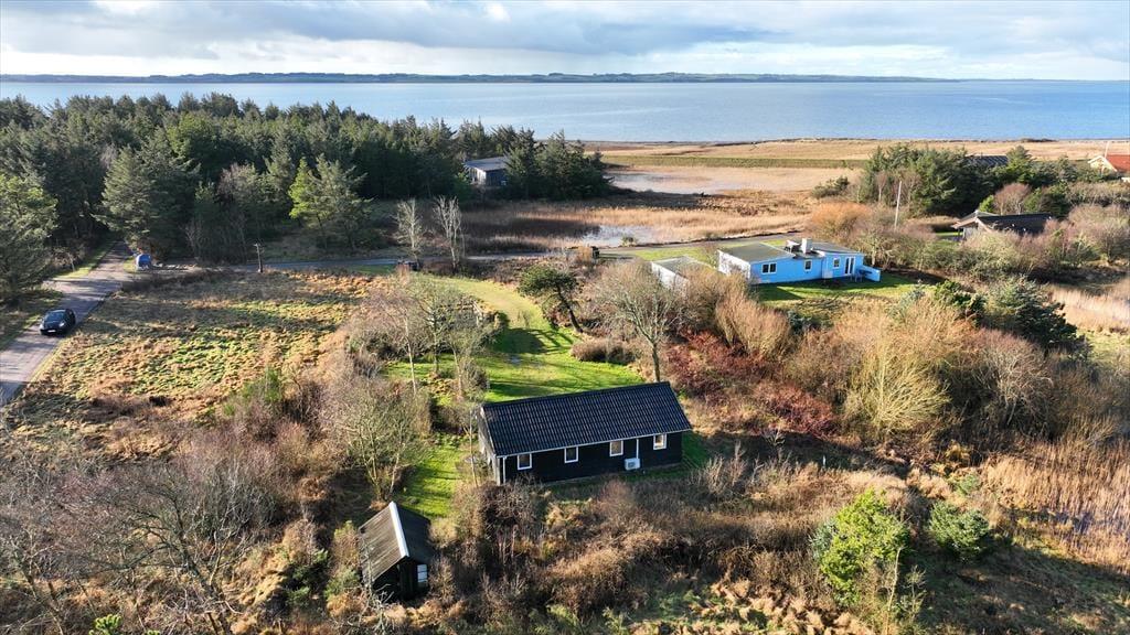 200 meter – det er den korte afstand, I skal tilbagelægge fra dette fine sommerhus og til Limfjorden. Sommerhuset ligger på den smalle landtange ved Oddesund, så faktisk har I kort gåafstand til vandet mod flere sider og dermed et fantastisk udgangspunkt for at bade, fiske og nyde de smukke kystomgivelser her i den sydlige ende af Thyholm.