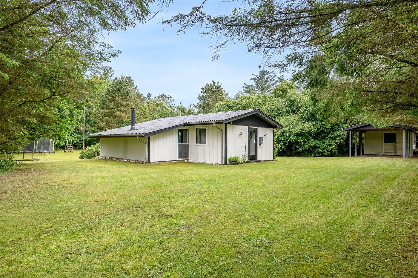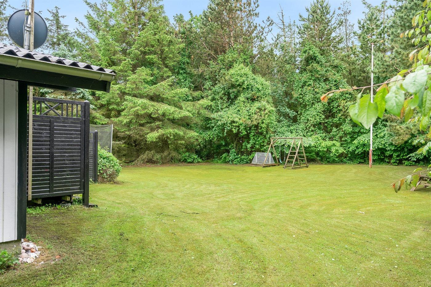 Ferieboligen er beliggende på en 2800 m² stor naturgrund. Der er 200 m til fjorden. Nærmeste forretning er beliggende i en afstand af 6000 m. Der er en golfbane i en afstand af 6000 m. Desuden er der 20 m² overdækket terrasse. Der er redskabsrum. Gynge. Sandkasse. Trampolin. Fodboldmål. Grill til rådighed. Parkering ved ferieboligen.