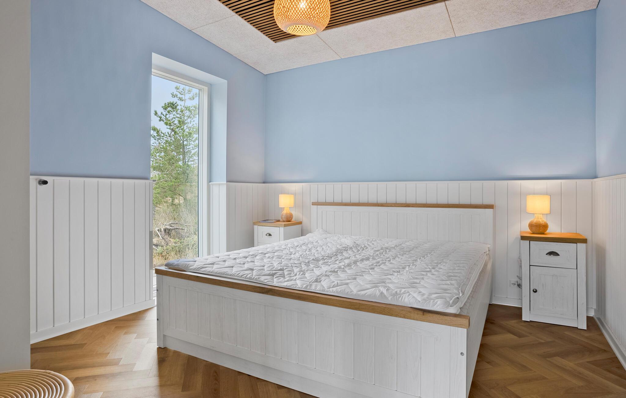 Hele familien kan se frem til en skøn ferie i dette luksuriøse sommerhus, som har en vidunderlig udsigt over Nissum Bredning. Her finder familier plads til en afslappende ferie i naturskønne omgivelser. Glæd jer til den hyggelige atmosfære med et elegant trægulv, der lægger op til afslappende timer. Det åbne køkken byder på god plads til at tilberede lækre måltider sammen, som I så kan nyde i den hyggelige spiseplads med den smukke udsigt over vandet.