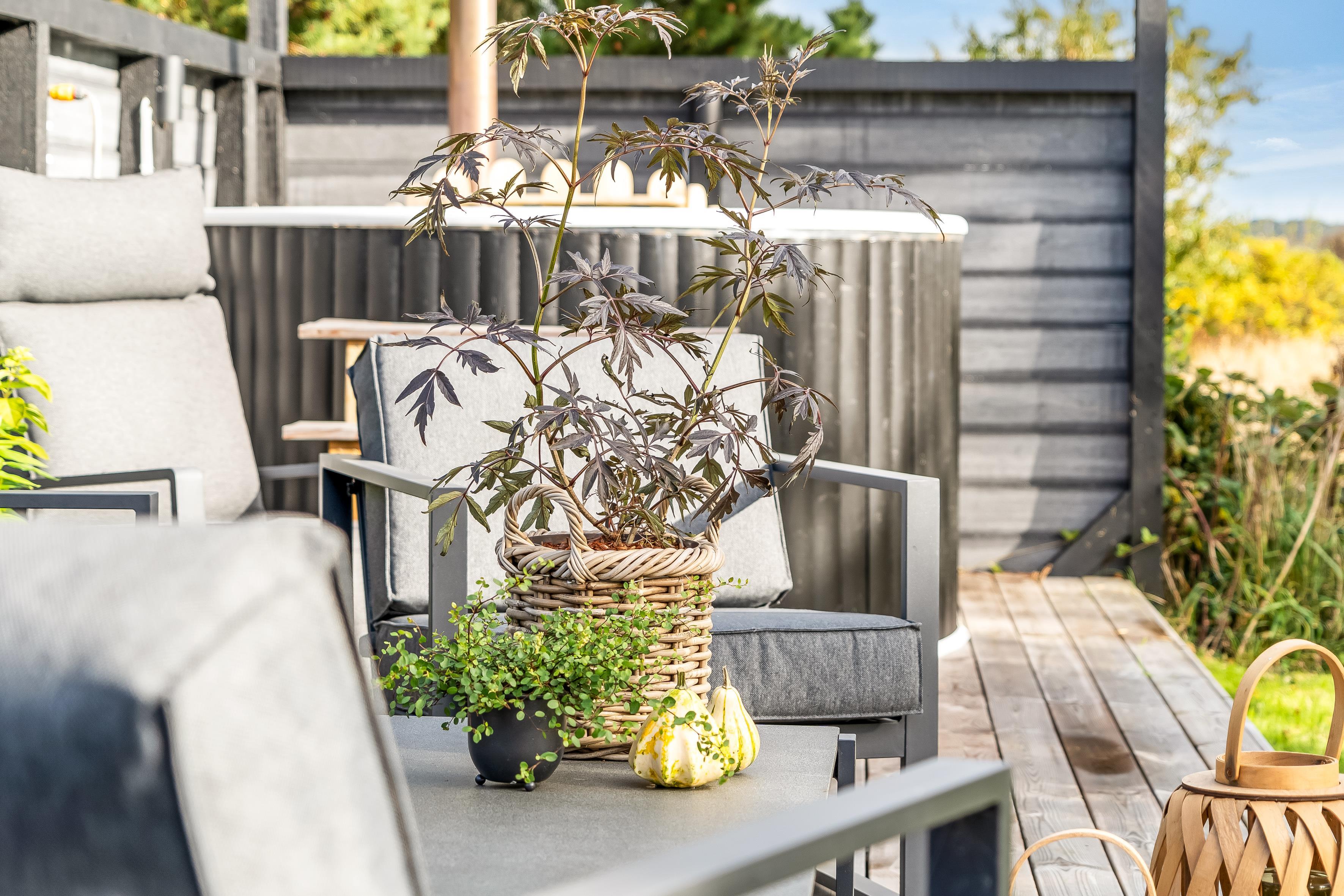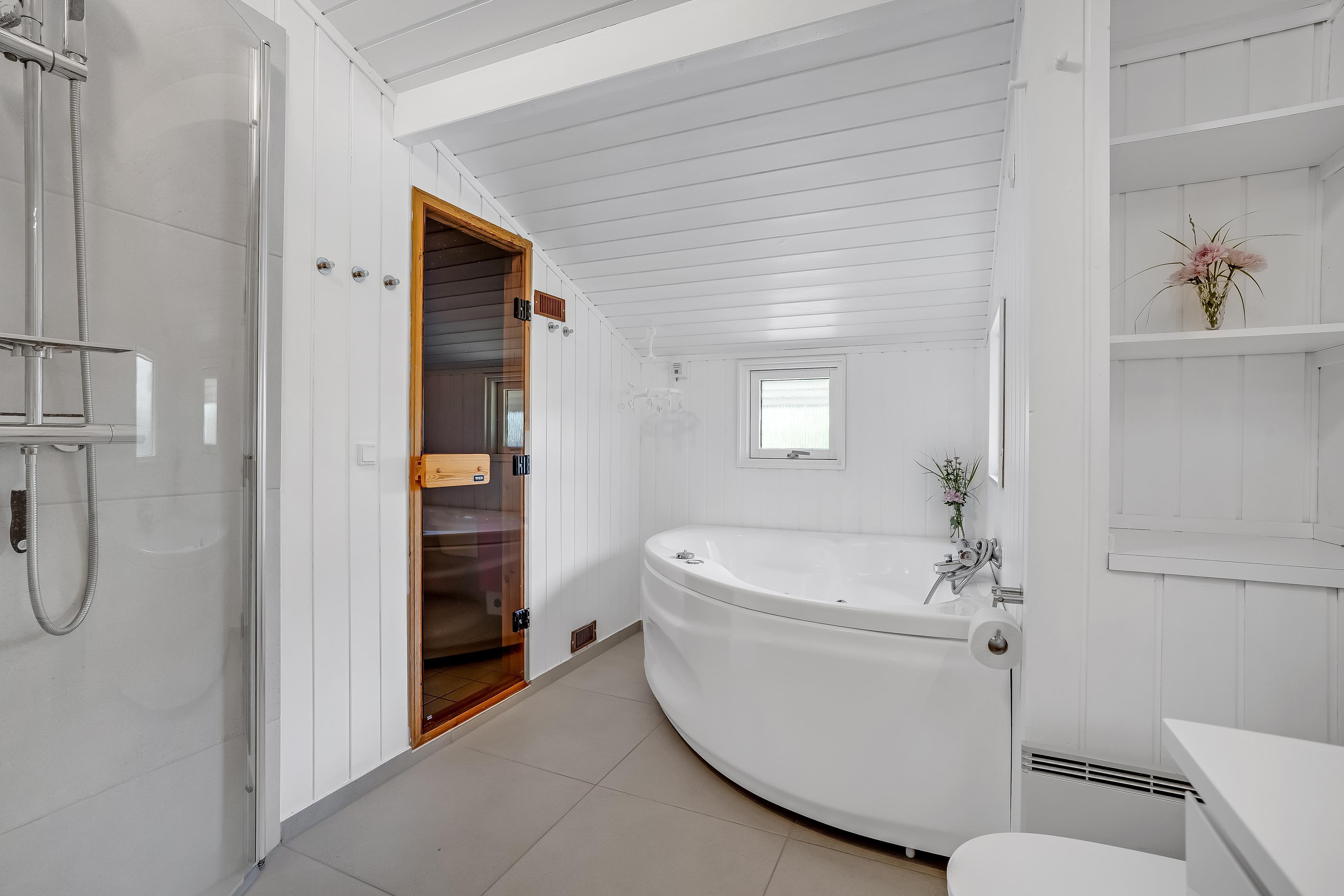 Køkkenet er fuldt udstyret med køleskab, induktionskogeplader, varmluftovn, mikrobølgeovn og opvaskemaskine, så I har alt, hvad I behøver for at tilberede lækre måltider. Badeværelset er moderne og har gulvvarme samt bruseniche, og der er desuden et ekstra gæstetoilet. Efter en lang dag med udflugter kan I nyde afslapning i den indendørs spa til to personer eller tage en dukkert i det udendørs vildmarkskar, som har plads til seks personer.