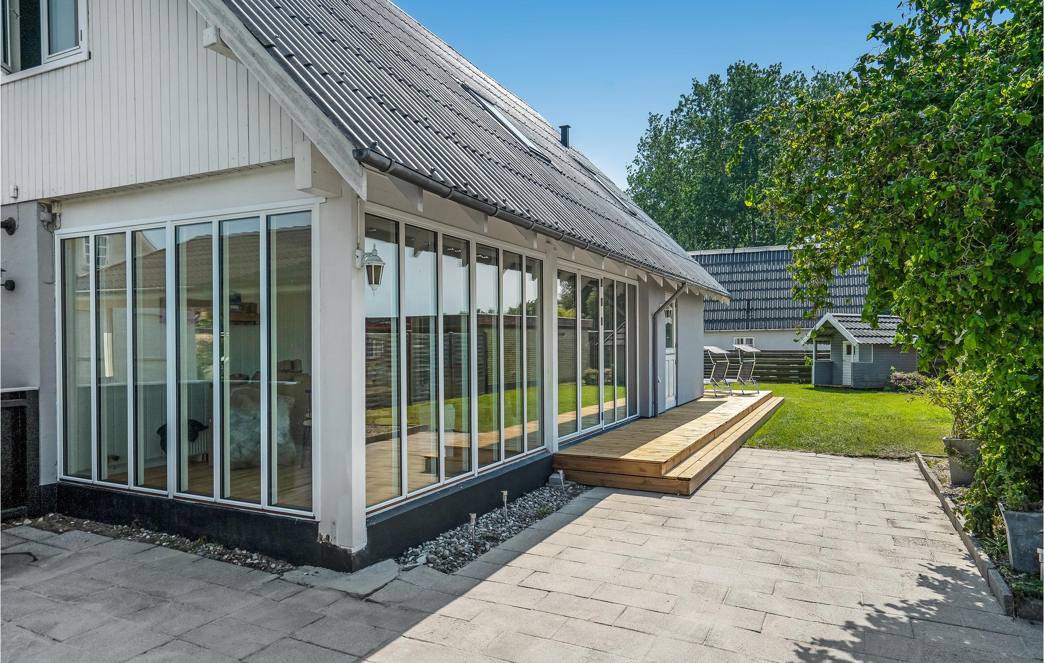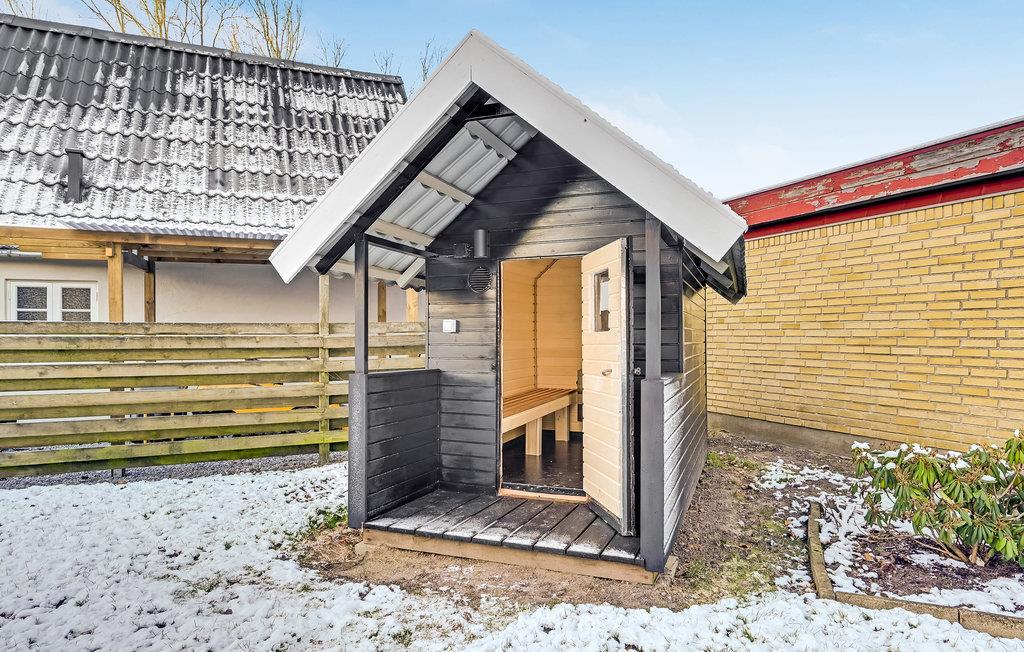 Indbydende sommerhus tæt på Odense Fjord med aktivitetsrum, spabad og privat have.