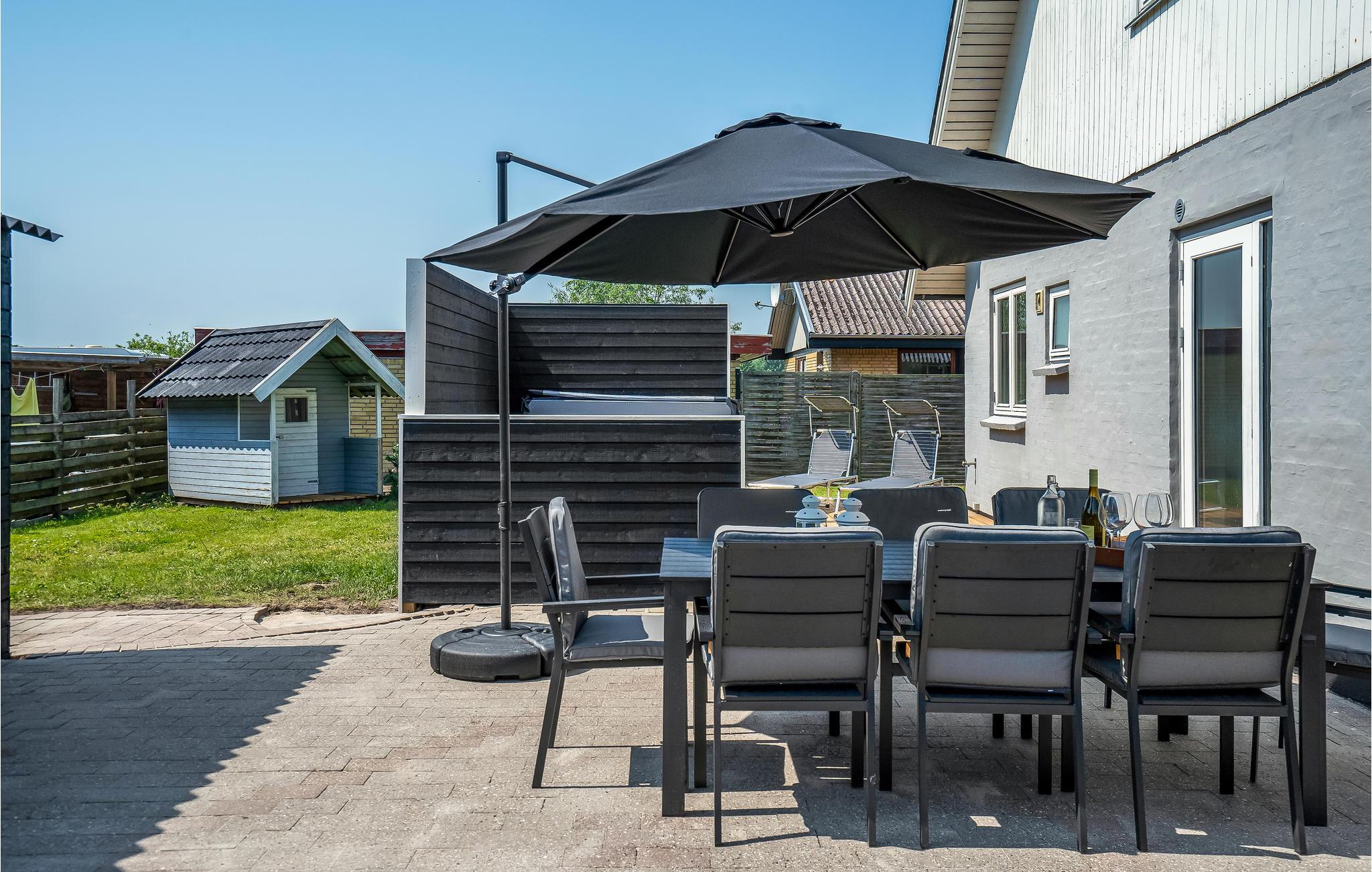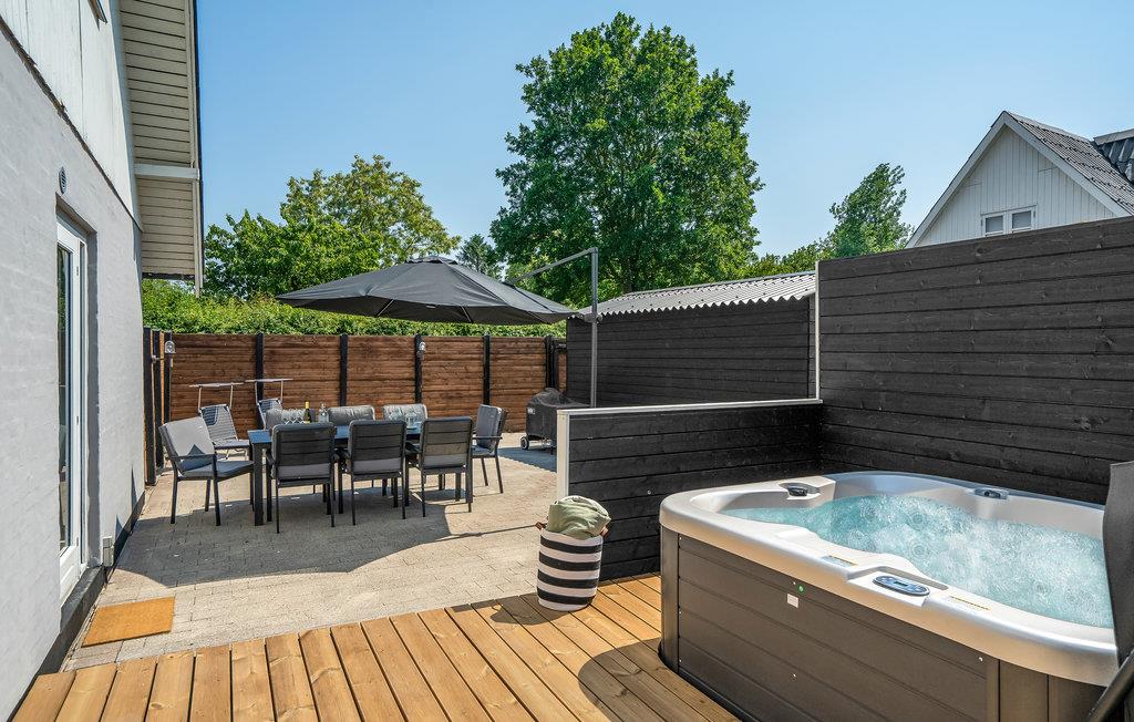 Grunden byder på en hyggelig træterrasse med havemøbler, hvor I kan spise sammen eller bare nyde solen. Efter en lang dag med fisketure eller udflugter til land og by inviterer boblebadet til at tilbringe afslappende wellness-stunder på terrassen.