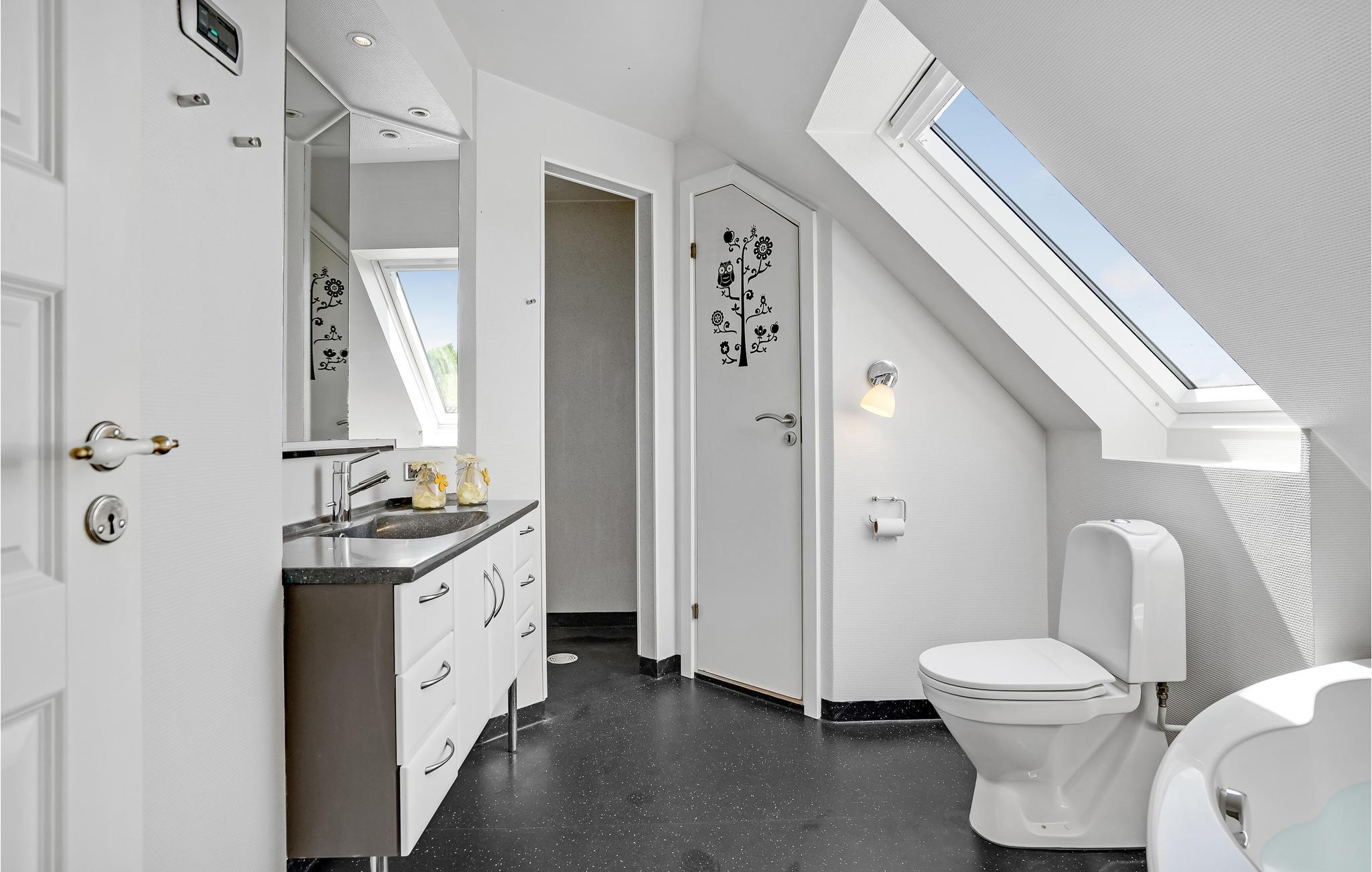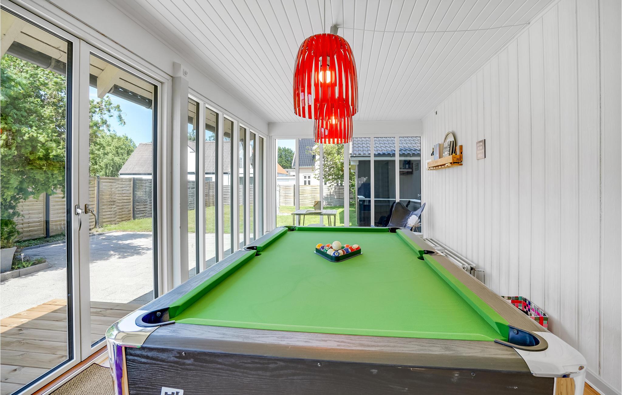 Det flotte feriehus rummer fire soveværelser, to badeværelser, køkken med vinkøleskab og en virkelig dejlig opholdsstue samt et aktivitetsrum, så der er også underholdning til regnvejrsdagene.