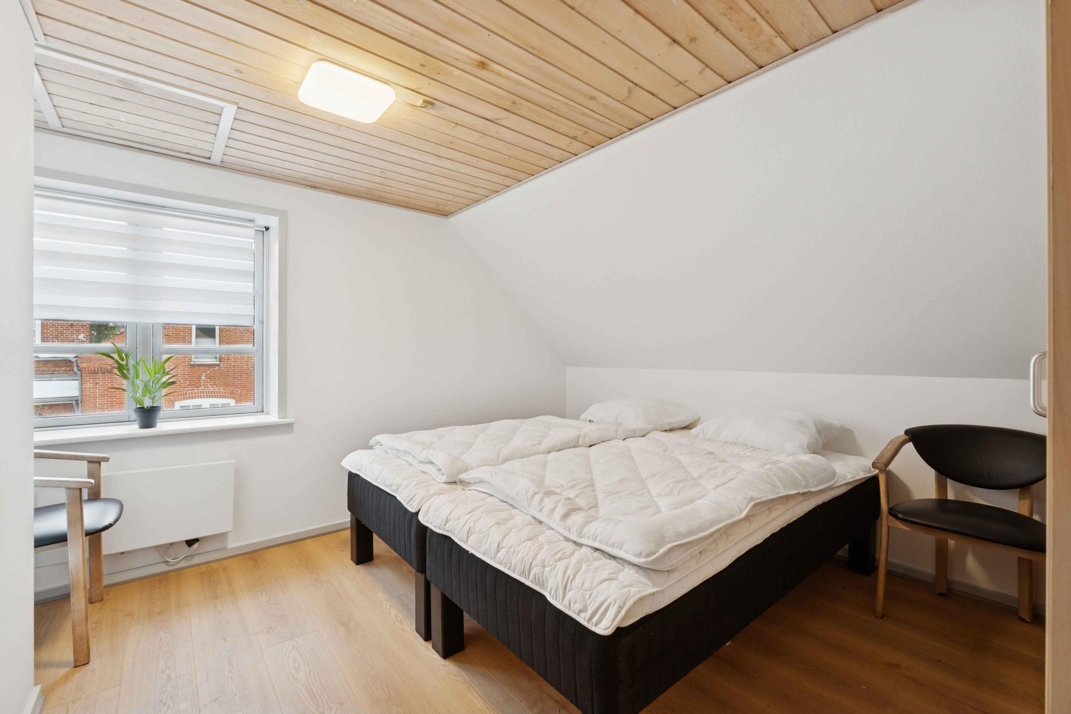 Denne ferielejlighed på 60 m² er indrettet til en afslappende ferie i rolige omgivelser. Boligen har tre soveværelser og i alt fem sovepladser, hvilket gør den velegnet til både den lille familie og par, der ønsker god plads. Indretningen er enkel og funktionel med fokus på ro og nærvær. Fra opholdsområdet er der udsigt til skoven, som giver en behagelig baggrund for feriedagene og understøtter lejlighedens afslappende tema. Ferielejligheden ligger i et naturskønt område med kort afstand til børnevenlig strand, kun 10 kilometer væk. Her er det let at kombinere strandture, afslapning og ophold i naturen uden at skulle køre langt. Området mellem Henne Strand og Vejers Strand byder på nogle af Vestkystens mest attraktive feriekvaliteter. Her finder I brede sandstrande, klitter og åbne naturområder, der indbyder til både lange gåture og aktive feriedage. Huset ligger tæt på tog-station Naturen er varieret og let tilgængelig med skov, hede og strand inden for kort afstand. Området egner sig godt til cykling, vandreture og udflugter i det fri, hvor tempoet kan sættes ned, og ferien nydes i eget tempo. Begge badebyer tilbyder indkøb, spisesteder og klassisk feriestemning, mens beliggenheden midt imellem sikrer ro og afstand til større menneskemængder. En ideel base for en ferie med fokus på natur, strand og afslapning.