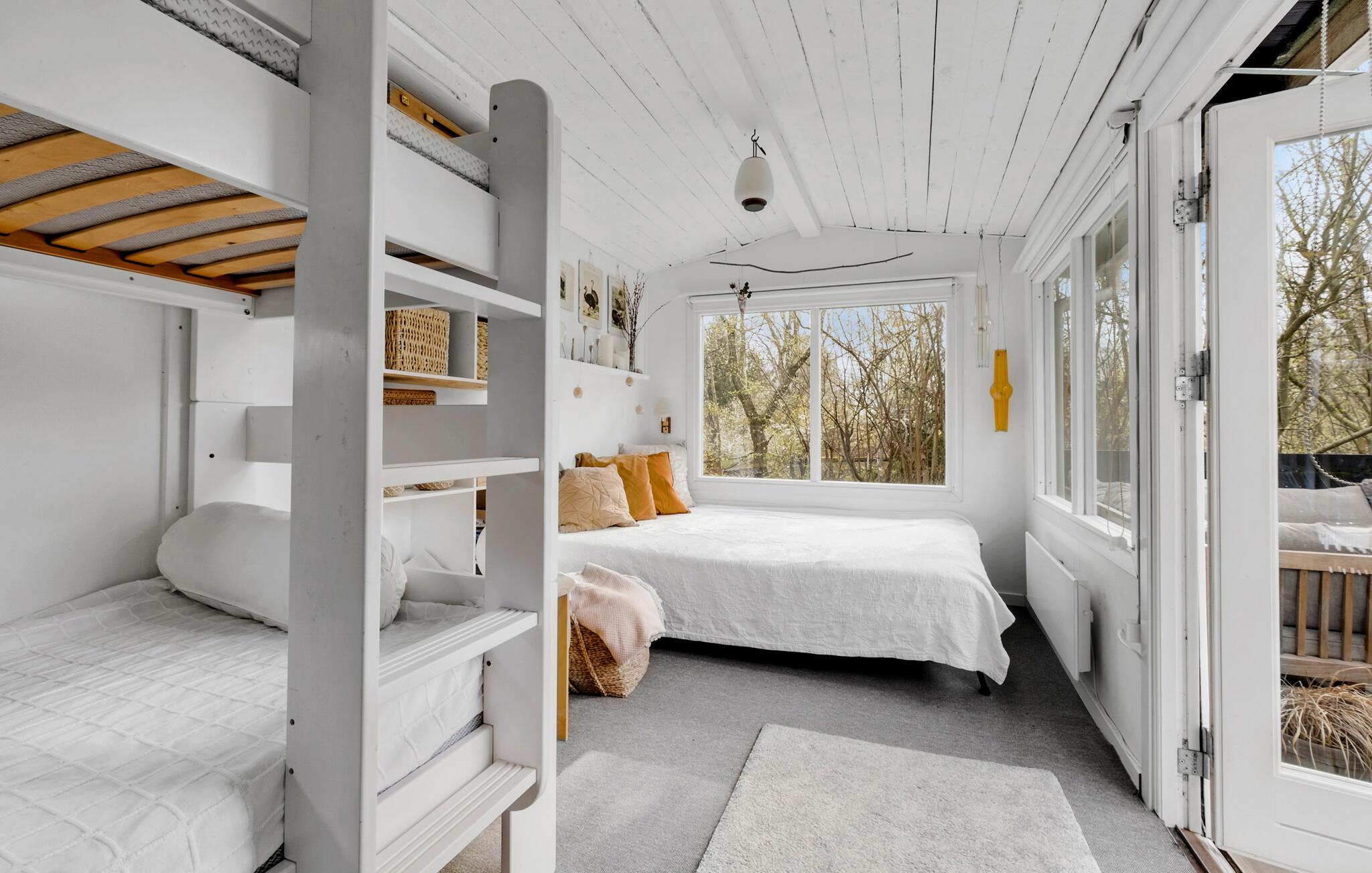 Soveværelse (nr. 1) - 2 Sovepladser. (Dobbeltseng(e)). 2 Sovepladser. (Etageseng(e)).