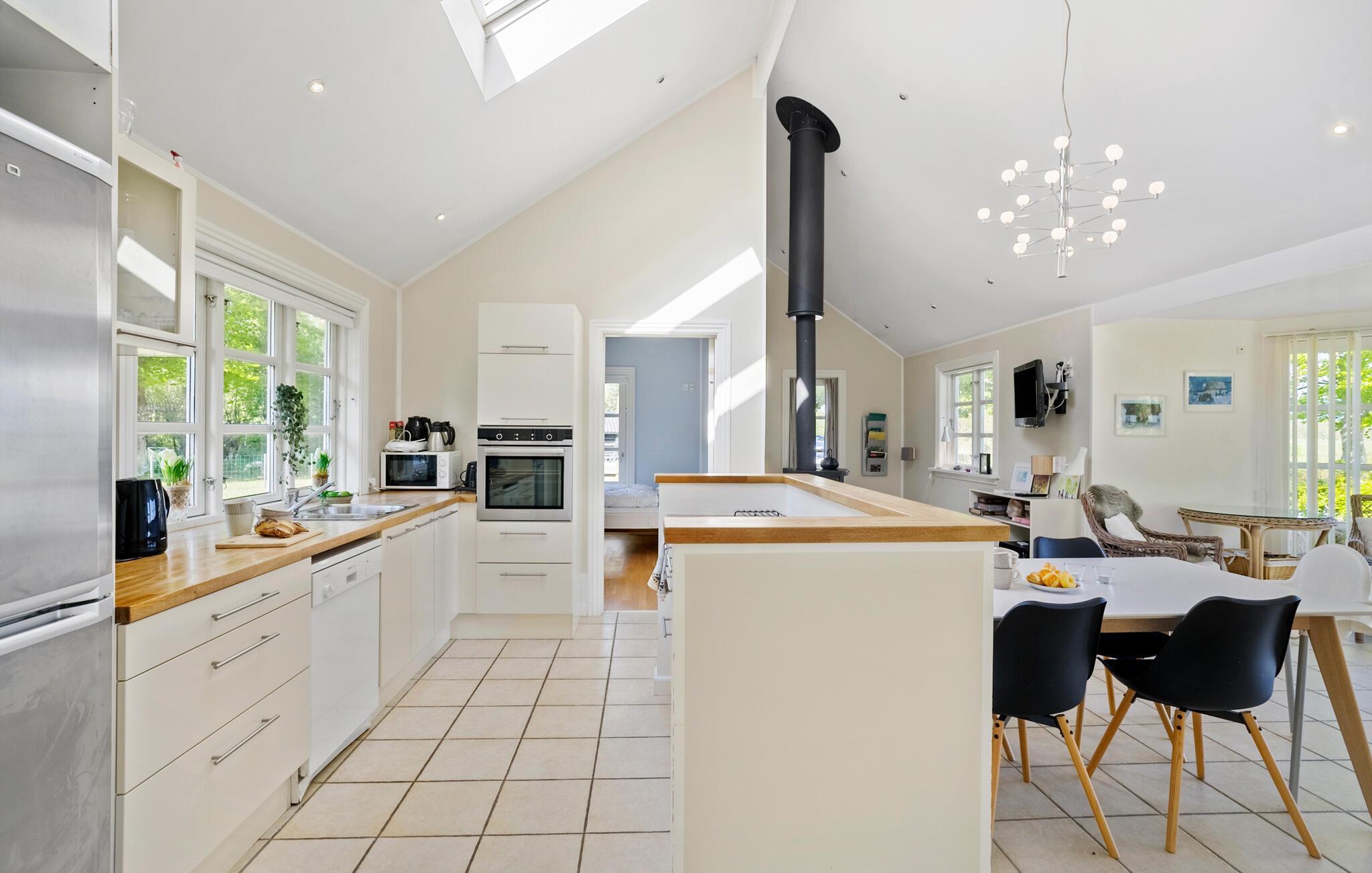 Velkommen til en skøn base midt i Isefjorden. Her er der lagt op til en ferie, hvor hele familien kan trække stikke fra hverdagen og rigtig nyde livet. Huset er placeret på en flot naturgrund med panoramaudsigt over fjordens glitrende blå og har en masse finesser, der gør jeres ophold ekstra behageligt. Indretningen er moderne med klassiske træk, der minder om dansk badehotelsstil og emmer af lys og luft. I det store fællesrum med højt til loftet kan I samles om dagens måltider, give jer god tid til madlavningen i det åbne køkken og finde en god plads i karnappen med udsigt over haven og vandet længere ude. Sæt jer til rette med en god bog og sjove brætspil efter dagens udflugter, og nyd freden og roen, inden det igen går løs med oplevelser.