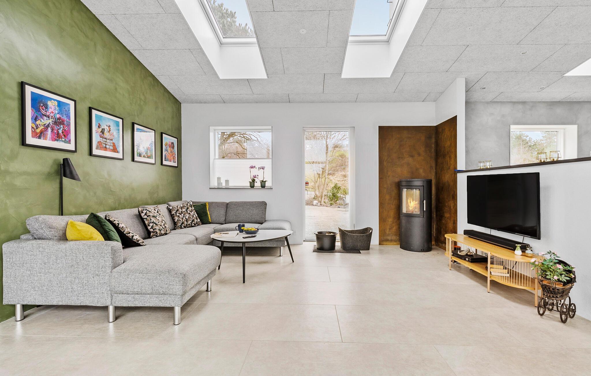Lad turen gå til Odsherred med familien og glæd jer til et fantastisk ophold i dette moderne og yderst komfortable feriehus. Den står på kvalitet over hele linjen her. Indretningen er virkelig flot og gennemtænkt med en åben planløsning og en særdeles velvalgt udsmykning, der bare emmer af god stil og sans for kvalitet. Stuen har et dejligt lysindfald gennem de store vinduespartier, der samtidig giver en fremragende udsigt til de smukke omgivelser. Tænd op i brændeovnen på de kølige dage og træk ud på terrassen, når solen og varmen indbyder til det. Herfra kan I se til havet og spille bold med børnene på græsplænen.