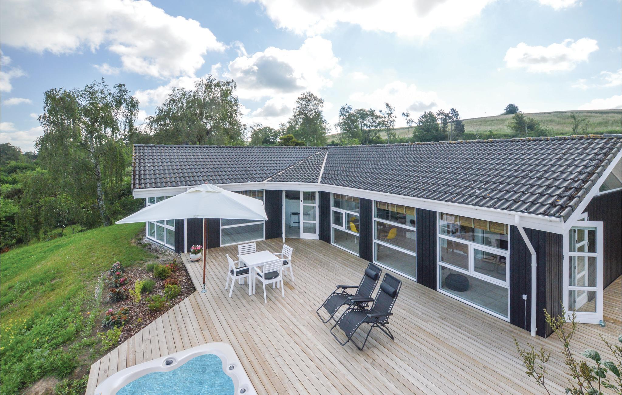 Nyd panoramaudsigt og afslapning i spabadet på dette skønne feriehus i Veddinge Bakker.