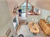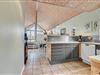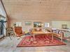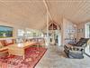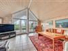 Husets hjerte er stuen med flere afdelinger, der indbyder til afslapning. Åbent til kip i kombination med trævægge- og loft og store vinduespartier skaber en rummelig og hyggelig atmosfære. Her kan I bl.a. flade ud til en god film på den store fladskærm eller tænde op i brændeovnen efter en frisk gåtur ved vandet.