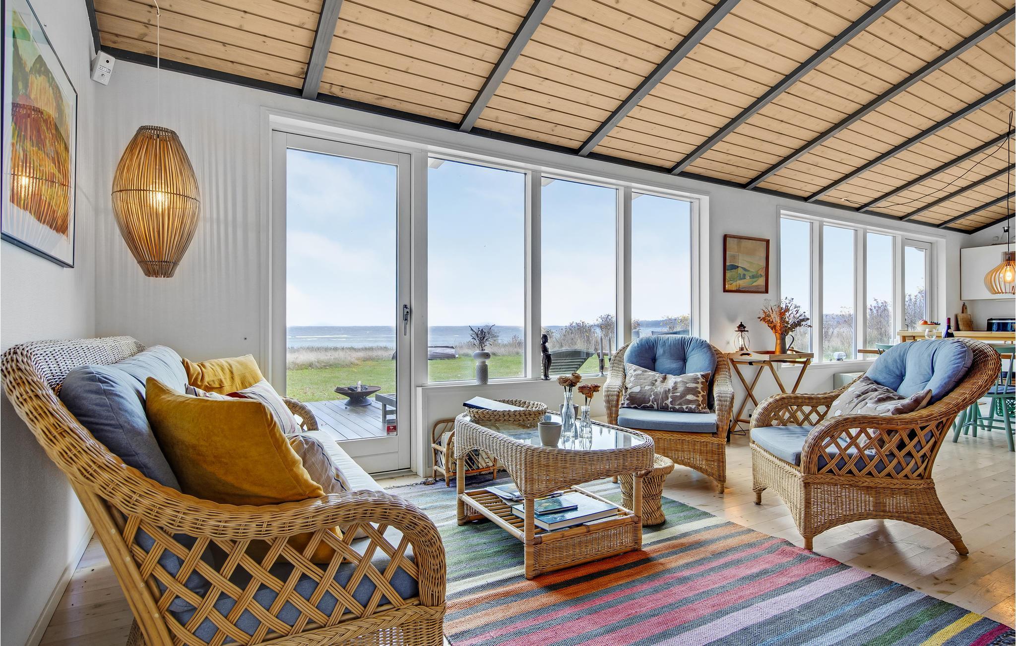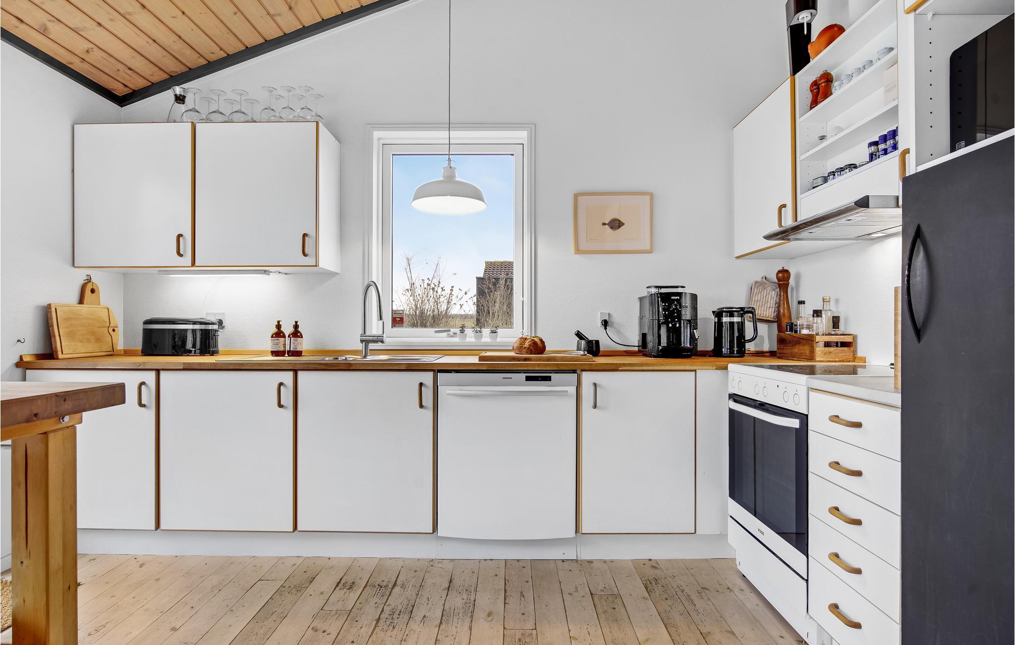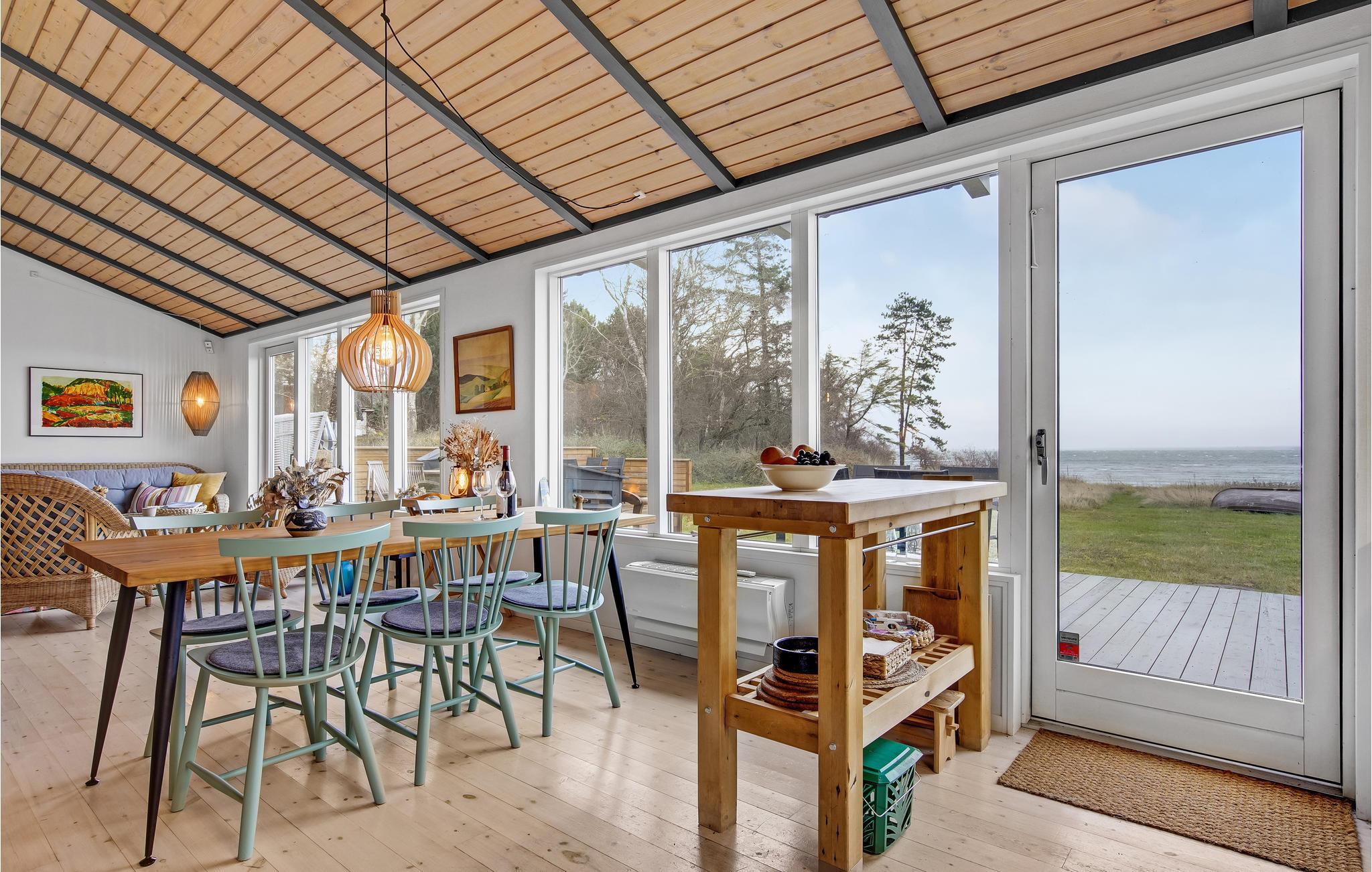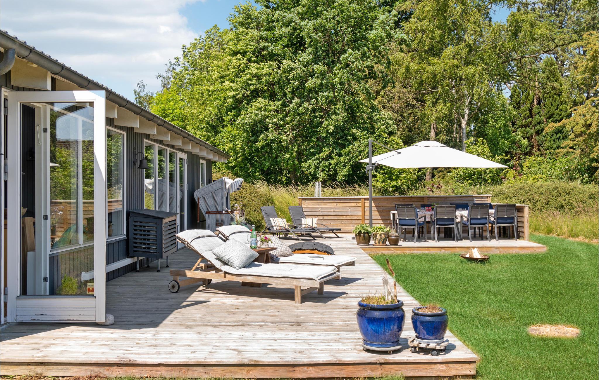 Dette lyse og smagfuldt indrettede træhus i skønne omgivelser nær hav og strand indbyder til en herlig ferie uanset årstid. Tilbered lækre feriemåltider i husets rummelige og veludstyrede køkken og nyd dem derefter på terrassen med havudsigt. Her kan I sole jer og læse en god bog gennem dagen, og senere kan I tænde op i grillen og afslutte en skøn feriedag med en hyggelig grillaften.
