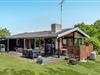 Charmerende familieferiehus nær Ordrup Strand med stor terrasse, vildmarksbad og dejlig have til afslapning.