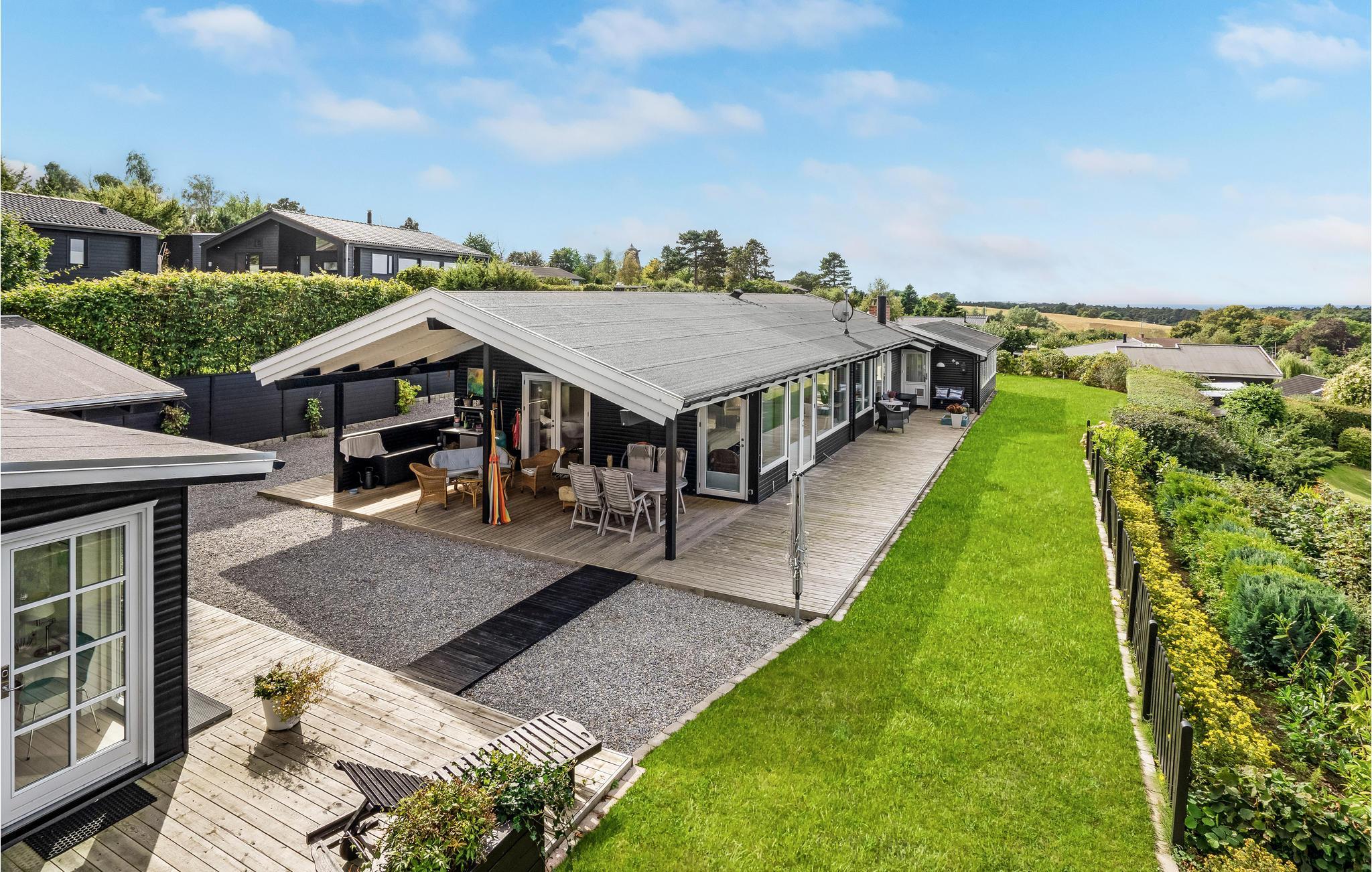 Slap af på den delvist overdækkede terrasse i komfortable havemøbler, nyd de lange sommeraftener og lækre retter fra grillen.