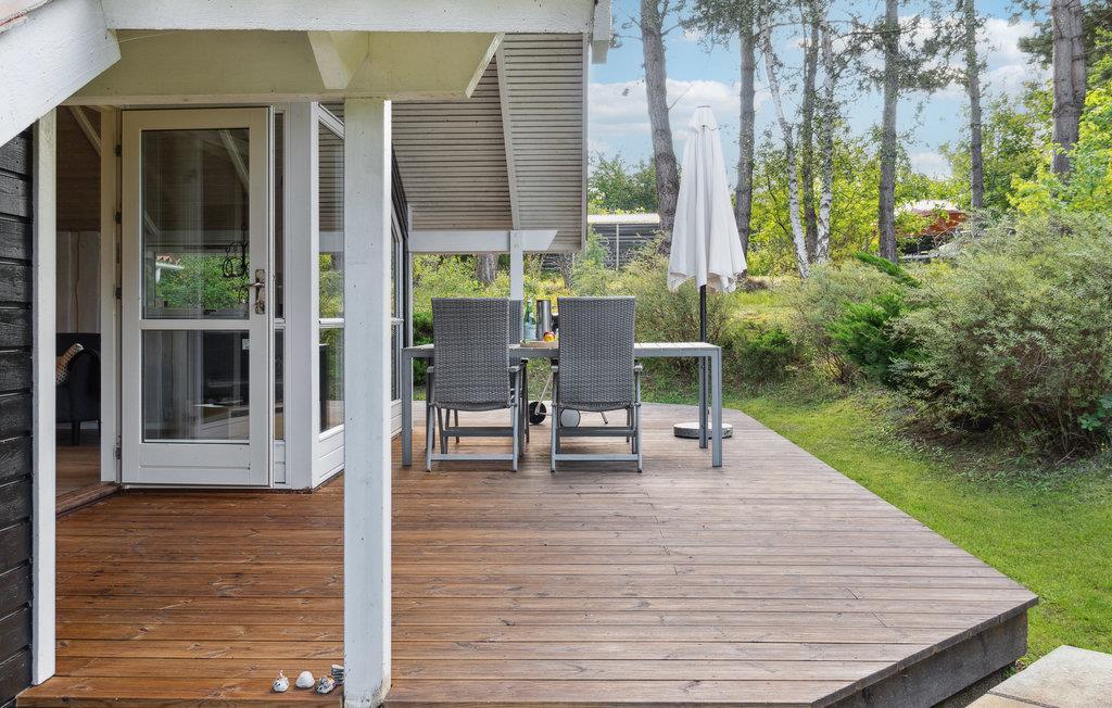Fra stuen kan I træde ud på en dejlig terrasse, så I kan rykke selskabet udendørs på alle de solrige dage og tilbringe de lange sommeraftener med lækre grillretter.