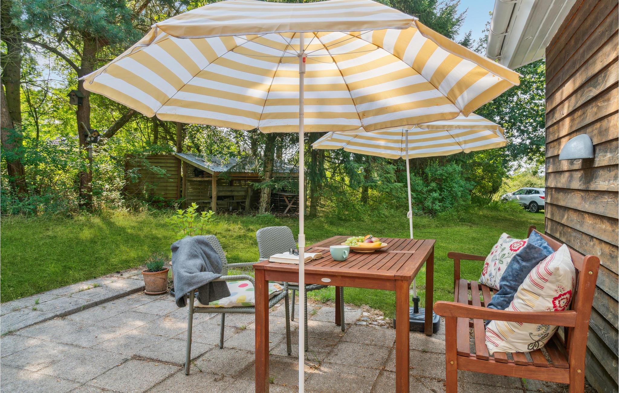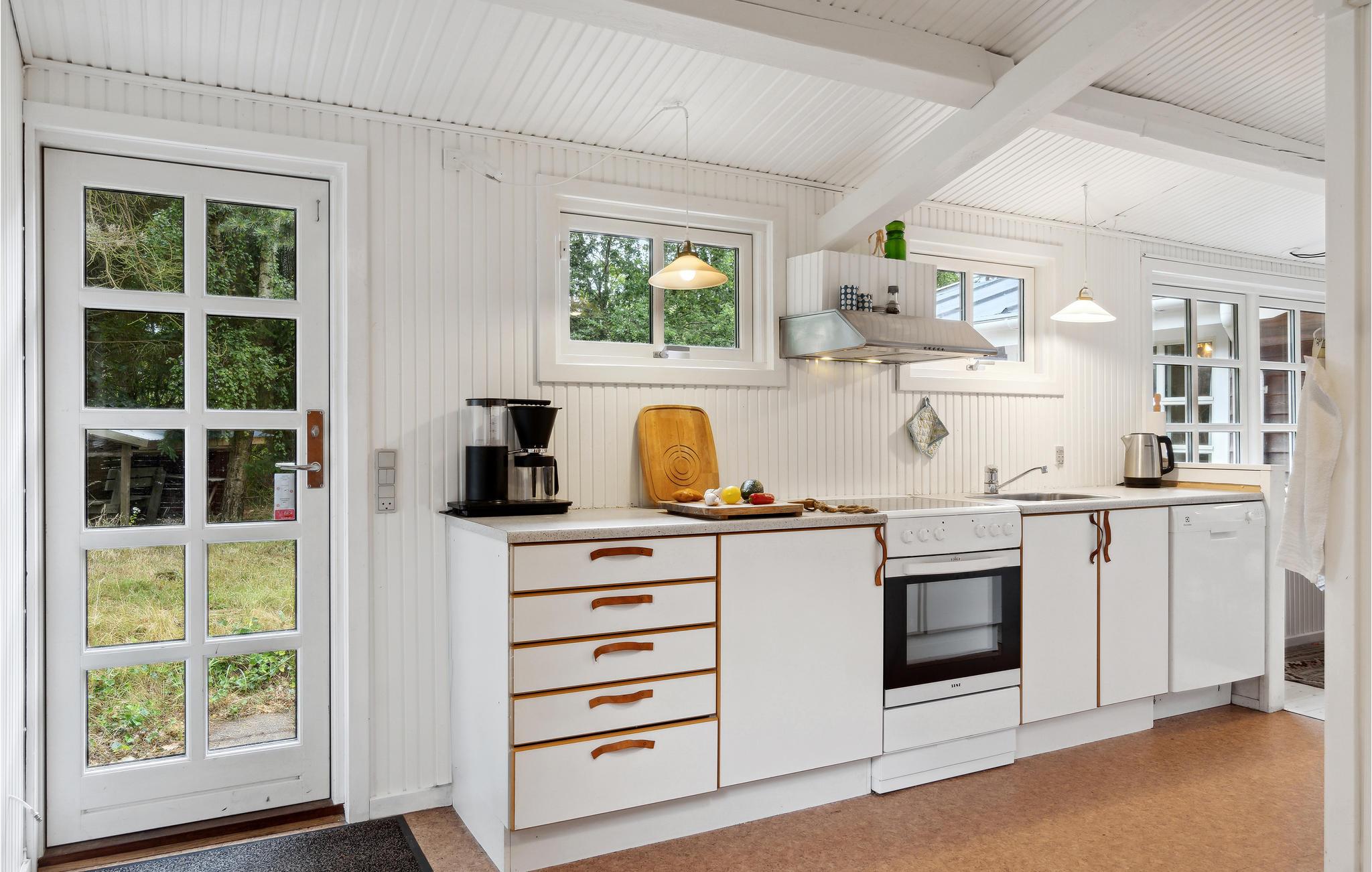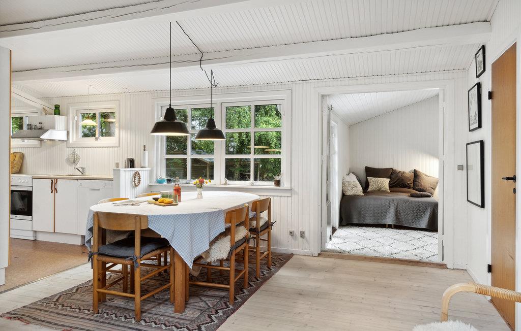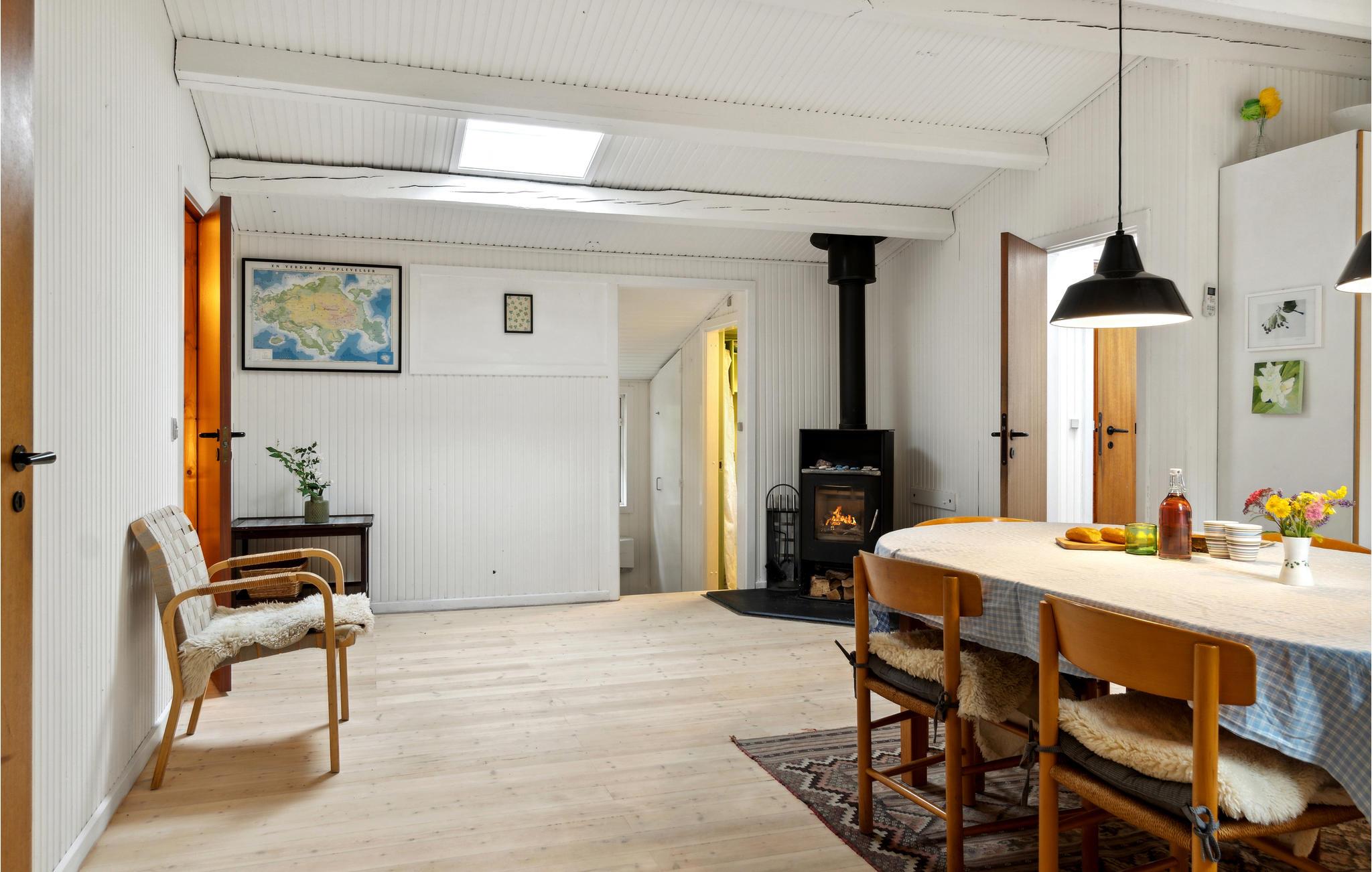 Velkommen til dette indbydende hus, som består af lyse rum indrettet i enkel, nordisk stil med klassisk sommerhuscharme, så her får I de skønneste rammer til at slappe af. Det store køkkenalrum er husets hjerte. Nyd måltiderne med dejlig udsigt til den grønne have og glæd jer til hyggelige aftener med flammernes hyggelige knitren i brændeovnen. Der er bøger og legeting i huset og garagen, alle til fri afbenyttelse.