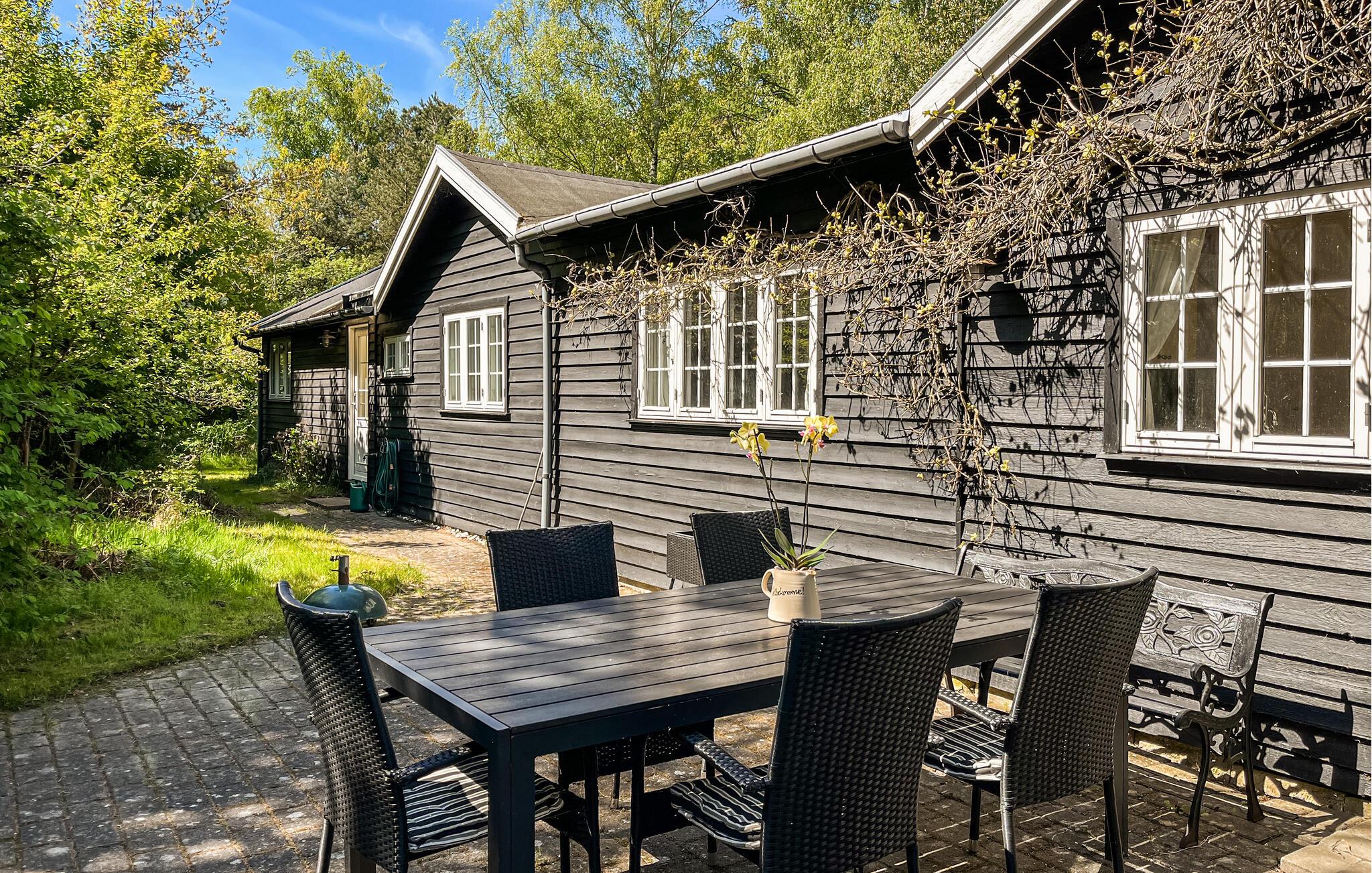 Hold jeres næste ferie i dette hyggelige feriehus på en stor naturgrund få meter fra stranden.
