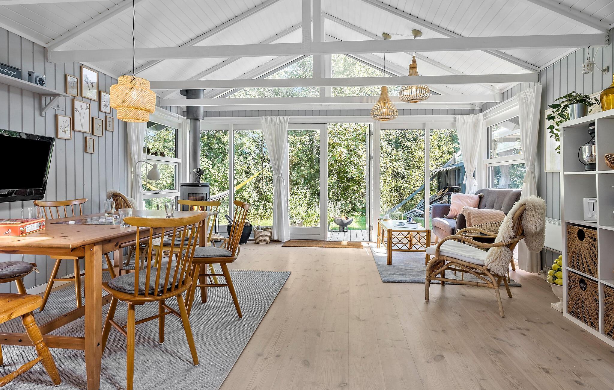 Velkommen i det grønne! Der er meget fredfyldt på denne grund, hvor de rolige omgivelser får alle til at sænke tempoet. Her får I et godt afbræk fra hverdagen og kan lade op mellem jeres spændende oplevelser i Odsherred. Også indendørs emmer huset af ro, lys og natur. Efter en hyggelig middag ved spisebordet kan I samles om brætspil og snakke om, hvad I skal ud at se i morgen. De lækre, moderne indretningsløsninger giver jer sikkert lyst til at holde mange små pauser i løbet af dagen, hvor man kan kigge ud af vinduerne mod haven og bare dagdrømme.