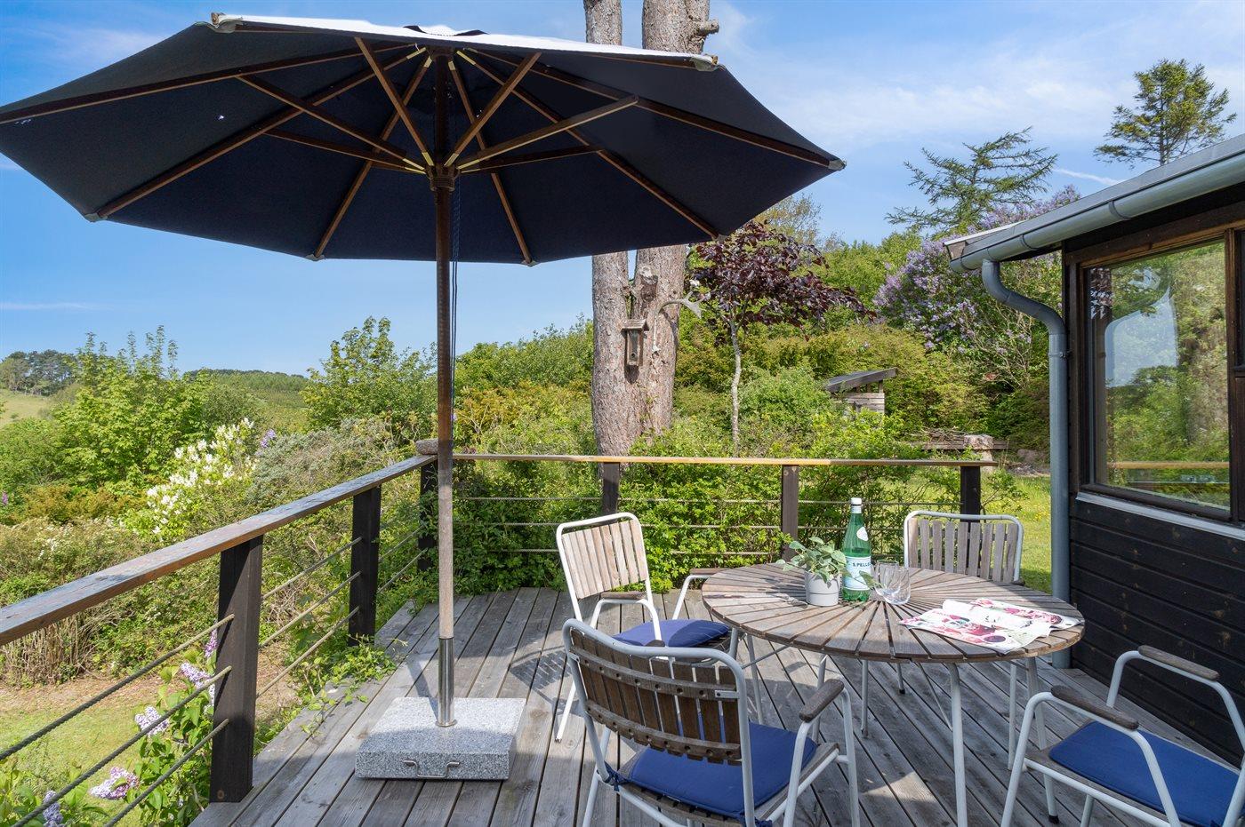 Et super spændende og ugenert sommerhus med havkig - beliggende for enden af blind vej i et område med naturskønne moræne bakker fra sidste istid mellem Vejrhøj og Ordrup Næs. Der er fra huset og terrasse udsigt over over bakkerne til skov og hav. Huset ligger på en stor beplantet naturgrund med et rigt fugleliv. Der er en østvendt terrasse med morgen-/middagssol og en sydvestvendt terrasse med middags-/aftensol. Bemærk at 2 af sovepladserne er i Hestbæk sovesofa i med springmadrasser.