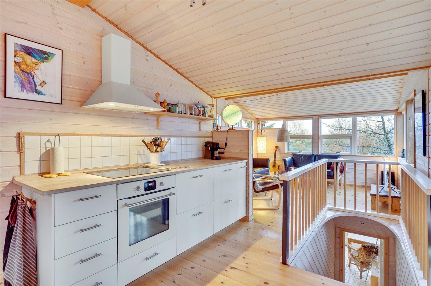 Køkkenet er udstyret med 1 køleskab. Der er 4 keramiske kogeplader, varmluftovn, mikrobølgeovn samt opvaskemaskine.