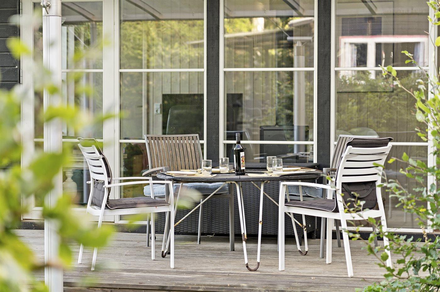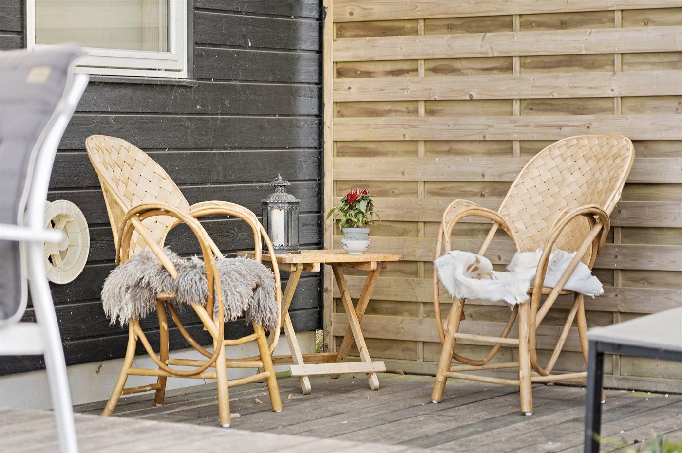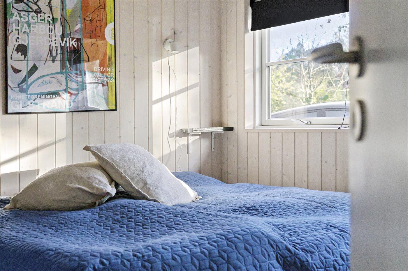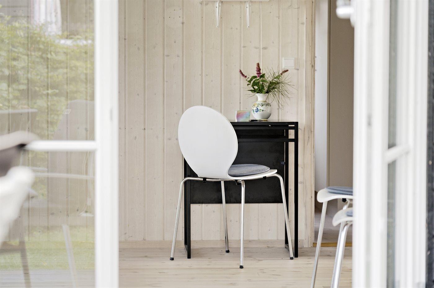 Huset er indrettet med et køkken-alrum, som ligger i åben forbindelse med stuen og med udgang til en flot overdækket terrasse. Indvendigt er alt holdt i lyse materialer med loft til kip i alle rum. I selveste huset findes der 2 soveværelser med hver 2 sovepladser og cirka 10 meter fra huset ligger der et anneks på 25 m2 med yderligere 2 sovepladser.
