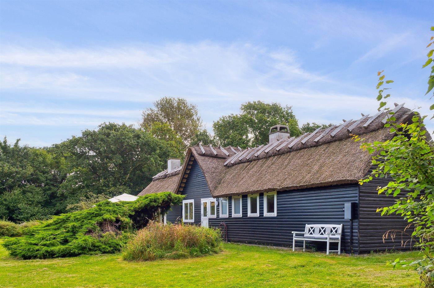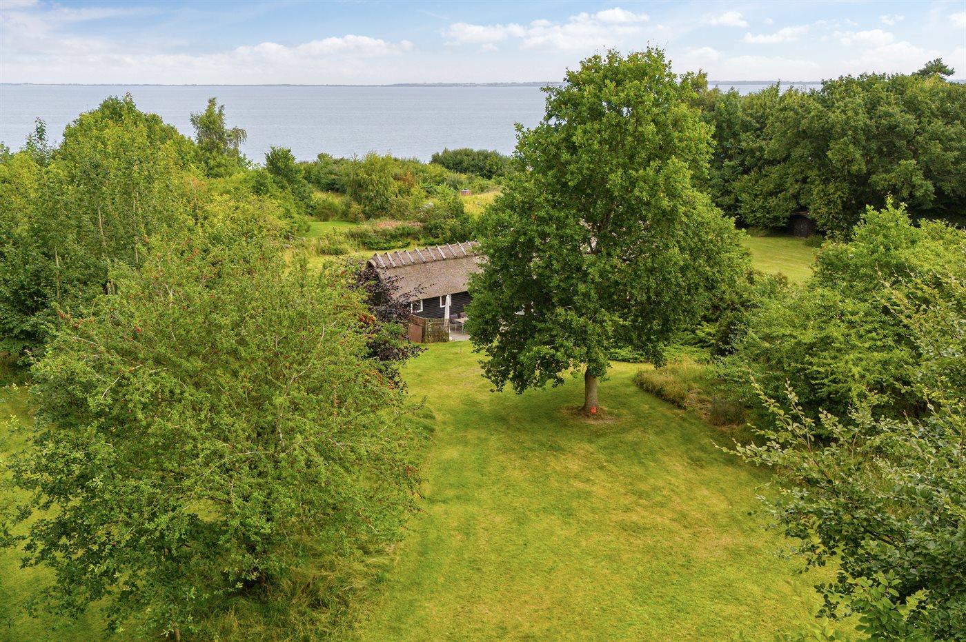 Charmerende stråtækt sommerhus ved Sejerø Bugt med stor naturgrund og havudsigt.