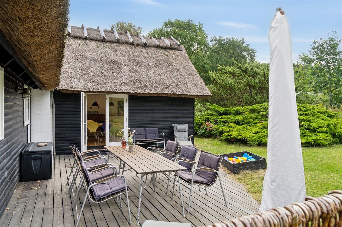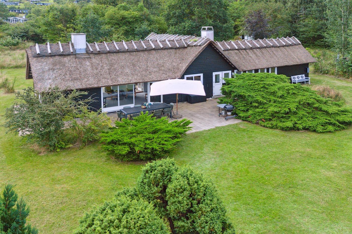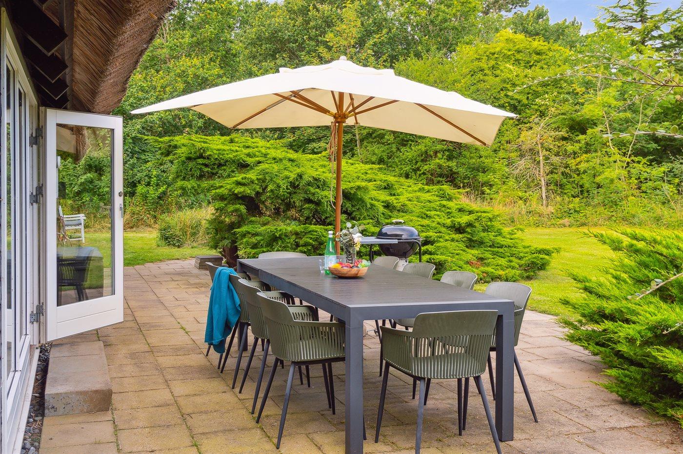 Bemærk: Grundet husets stråtag og deraf øget brandfare er brug af åben ild og fyrværkeri ikke tilladt. Kulgrillen må gerne benyttes, men kun på fliseterrasserne.