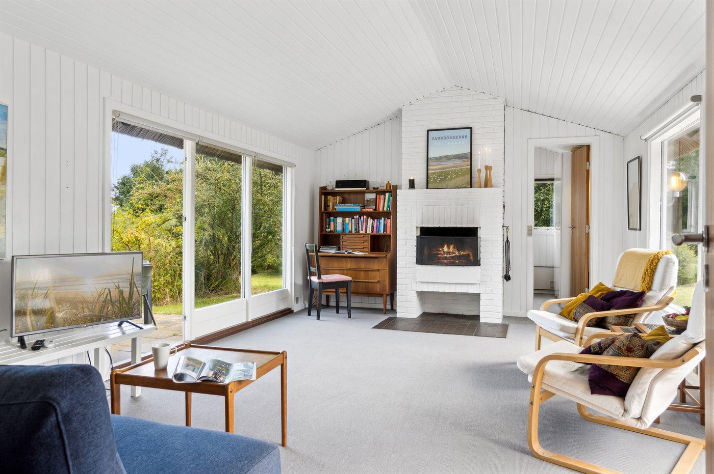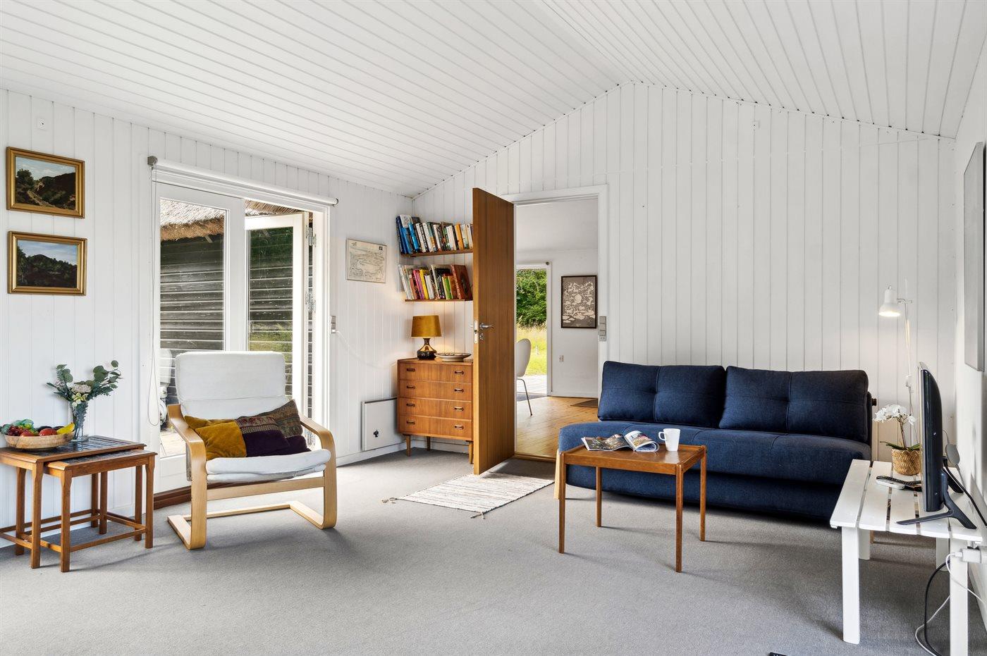 Huset indeholder et hyggeligt køkkenalrum i åben forbindelse med et afslappende sofamiljø og i den tilstødende stue er der pejs. I huset er er der 3 soveværelser med hver 2 sovepladser og i annekset der ligger cirka 25 meter fra huset er der yderligere 2 sovepladser. Den dobbelte sovesofa i stuen tilbyder også 2 sovepladser. Badeværelset er med bruseniche og gulvvarme. Der er vaskemaskine.