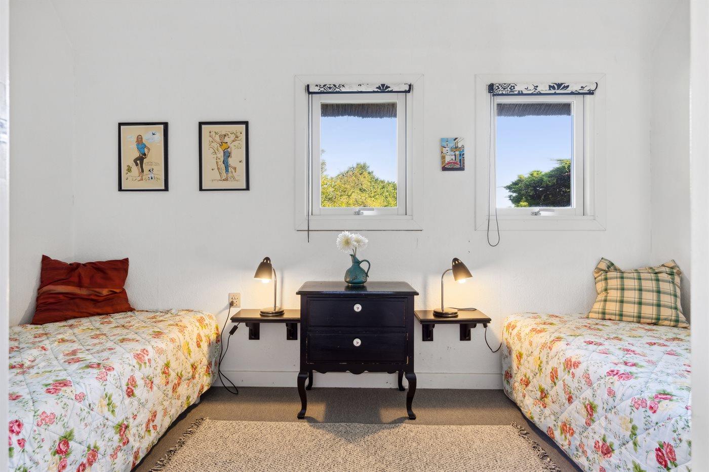 Der er i alt 4 soveværelser. Sovepladserne fordeler sig på: 2 sovepladser i dobbeltseng. 6 sovepladser i enkeltsenge. 2 sovepladser i sovesofa (dobbelt). 2 af disse sovepladser befinder sig i anneks og andre 2 af disse sovepladser befinder sig i stuen. Derudover er der 1 stk. barneseng.
