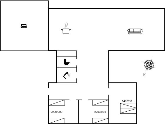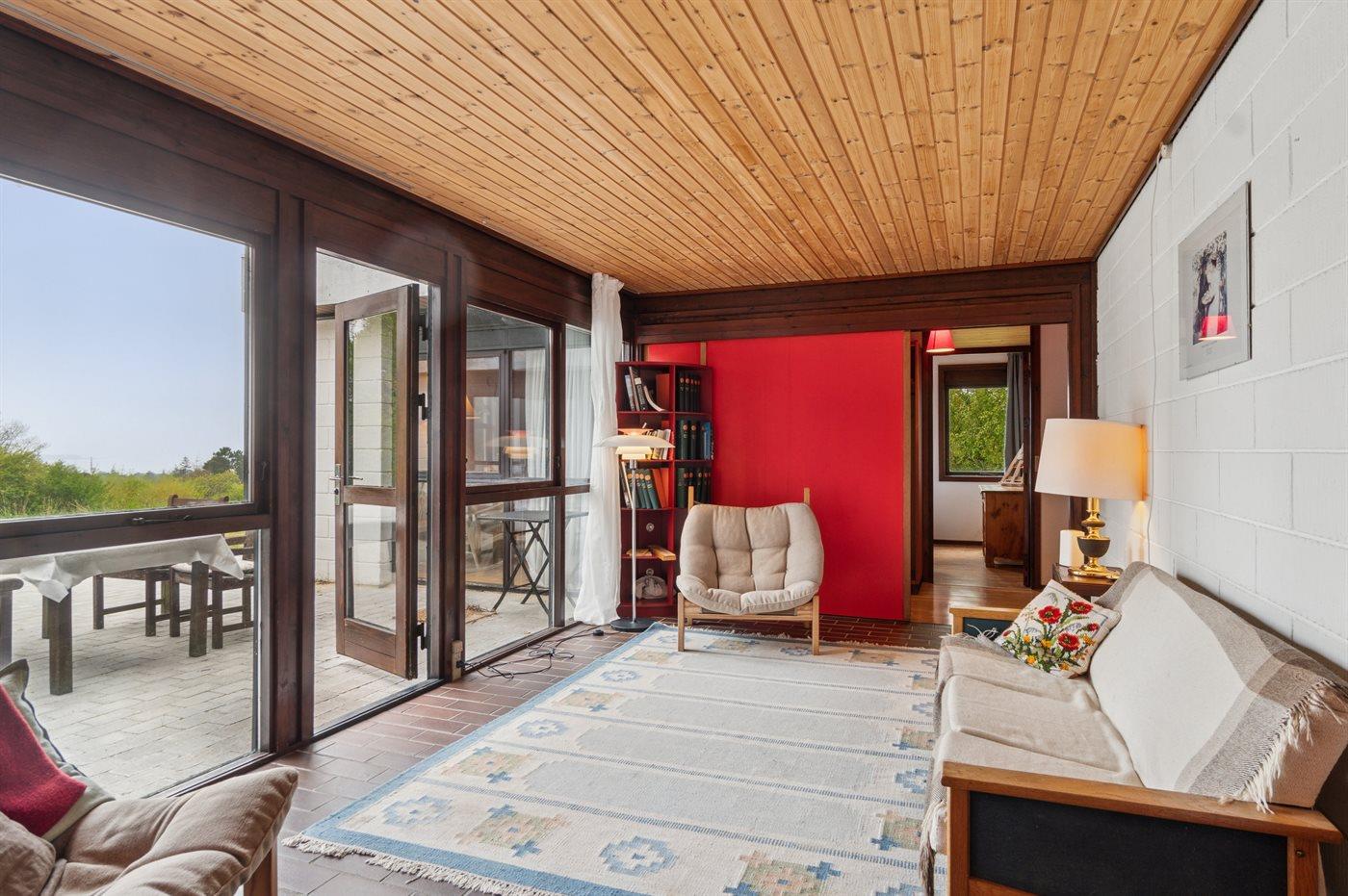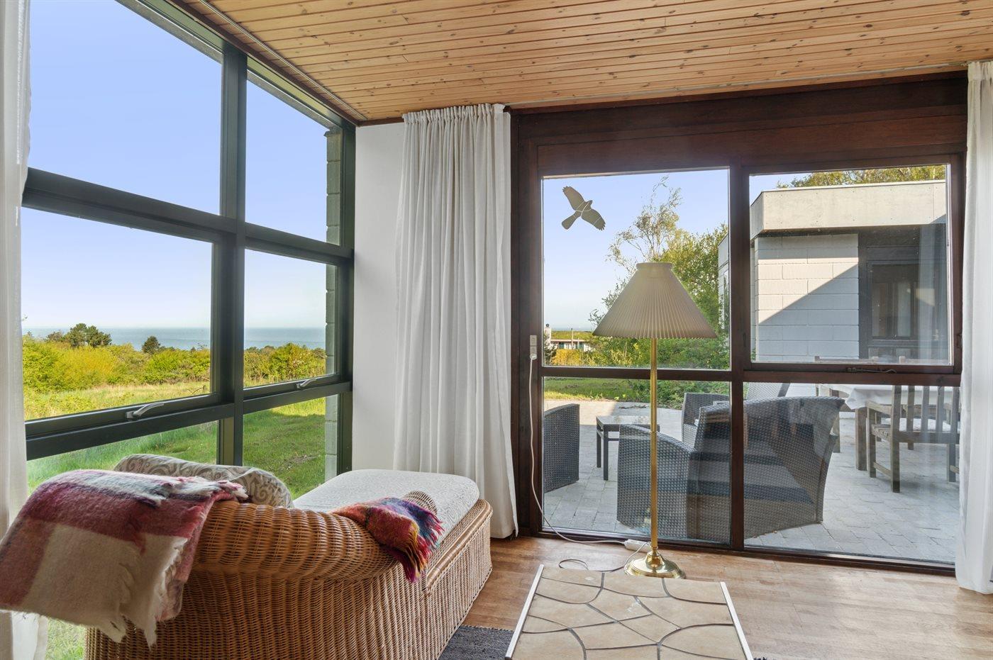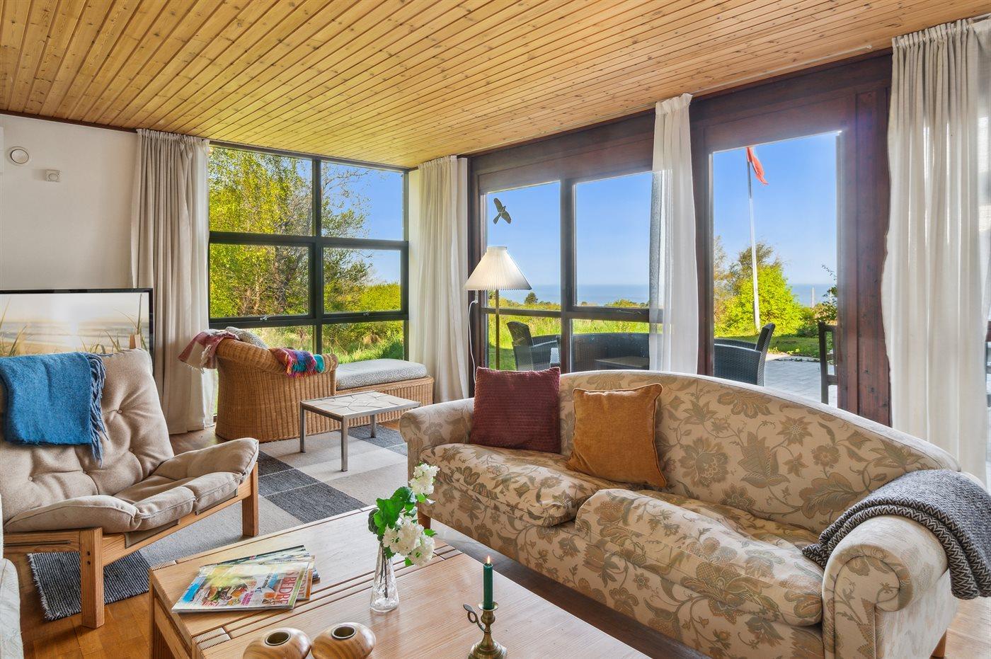 Huset indeholder et hyggeligt køkkenalrum med stuen grænsende op til den skønneste udsigt over naturen og havet. Der er 3 soveværelser. I det største soveværelse er en dobbeltseng og herfra er der udgang til terrassen. De 2 øvrige soveværelser er begge med 2 enkeltsenge. Badeværelset og toilettet er adskilt. Der er bruseniche og badekar i badeværelset.