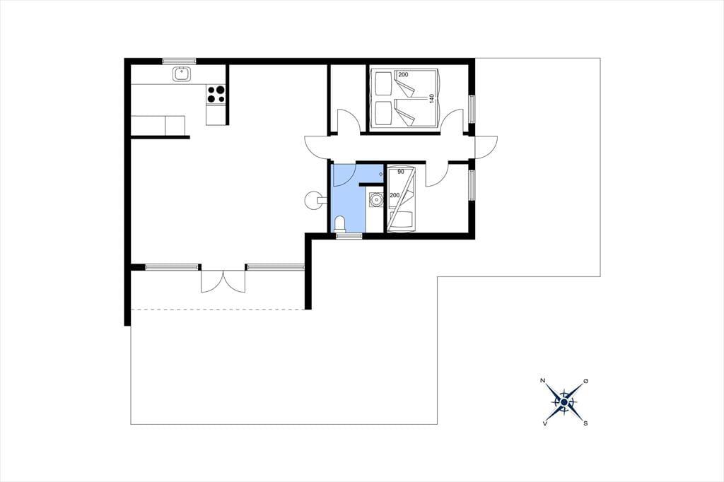 2 værelser: med henholdsvis 1 dobbeltseng og 1 køjeseng med 2 køjer.