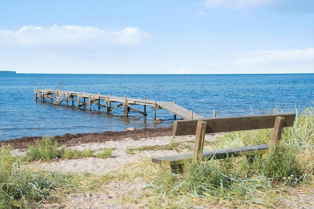 Her kommer I til at bo i 2. række med udsigt til vandet. Her finder du en skøn strand, med store grønne områder og adgang til bænke og badebro.