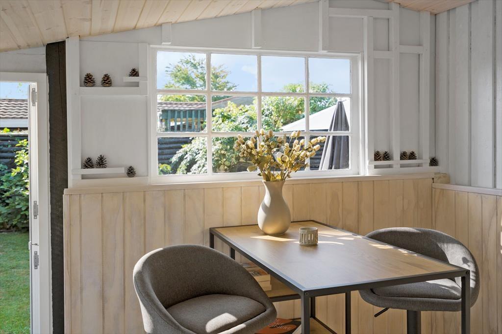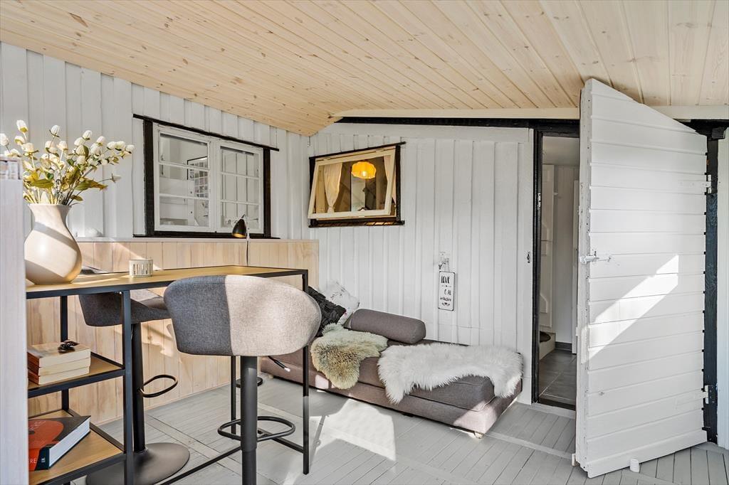 Hold ferie i dette hyggelige sommerhus og kom helt ned i gear. I den store pæne entre, kan du lægge skoene og hænge overtøjet op og komme direkte ind i den hyggelige, smukt møblerede stue med Streaming TV. Her er en sofagruppe, en spiseplads og en brændeovn til de kolde dage. Det lille køkken byder velkommen med fire glaskeramiske plader, ovn, stort køleskab med lille fryser, elkedel, mikroovn, opvaskemaskine og kaffemaskine. På bagsiden af ferieboligen kan I nyde hinandens selskab i et meget dejligt uderum med barbord og barstole samt sofa. Rummet indbyder til hygge, læsning og kaffe eller en drink.