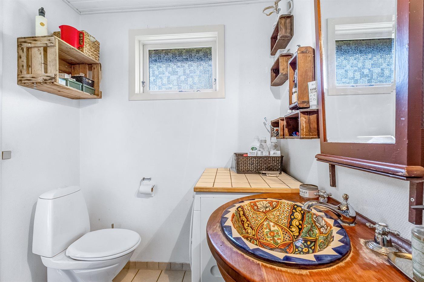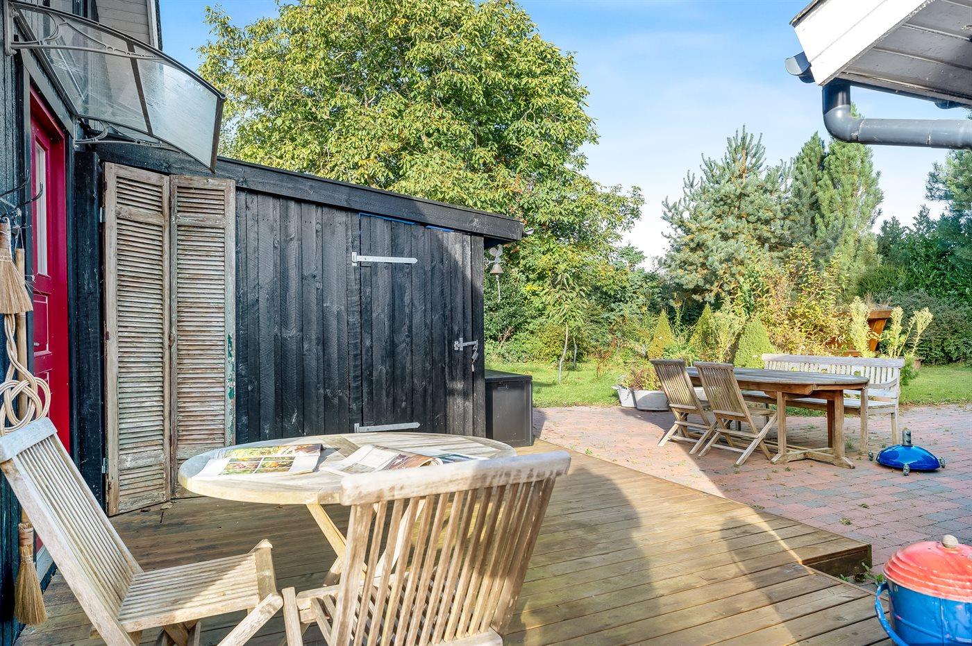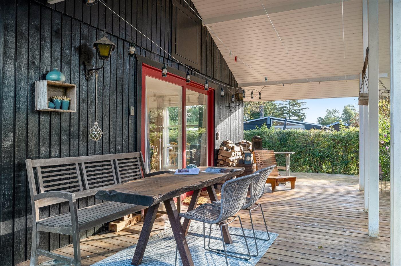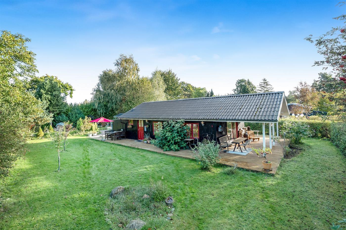 Hyggeligt sommerhus nær Grønsund med overdækket terrasse, anneks, bålplads og shelter på stor naturgrund.