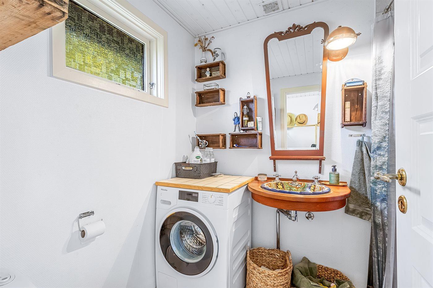 Huset er let og hyggeligt indrettet med små fine detaljer overalt. Fra stuen kan I gå direkte ud på den overdækkede træterrasse og nyde solen i solvognen eller havemøblerne, og når der skal laves mad, kan I gøre det på kulgrillen. Huset ligger på en naturgrund på tæt ved Grønsund og der er plads til leg og hygge. På den skønne havegrund findes også et shelter samt en hyggelig bålplads.