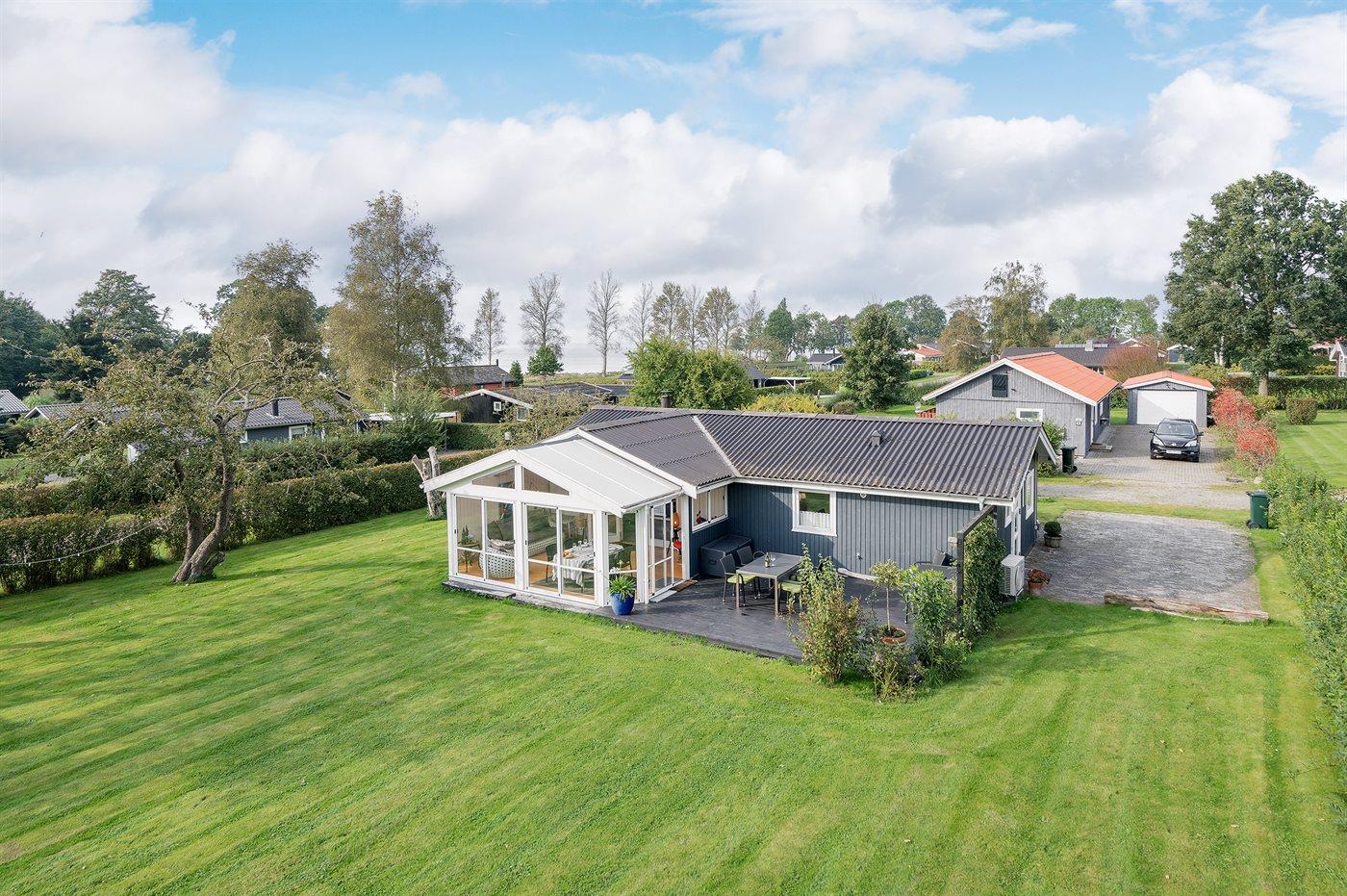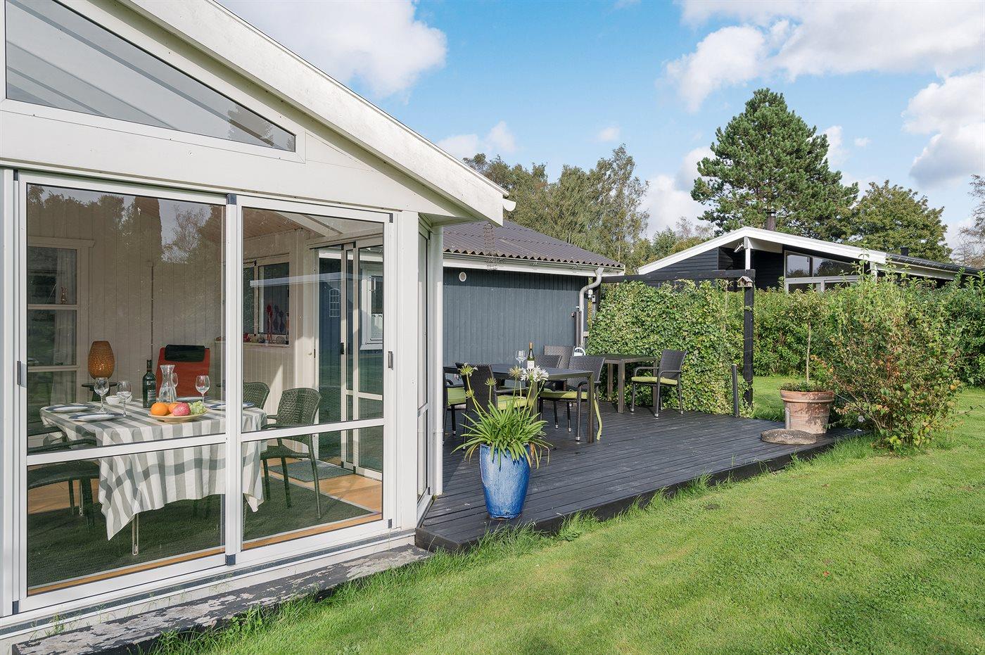 Ferieboligen er beliggende på en 923 m² stor havegrund. Der er 200 m til havet. Nærmeste forretning er beliggende i en afstand af 600 m. Til ferieboligen hører 30 m² terrasseareal. Ligeledes er der adgang til udestue. Der er redskabsrum. Parkering ved ferieboligen.