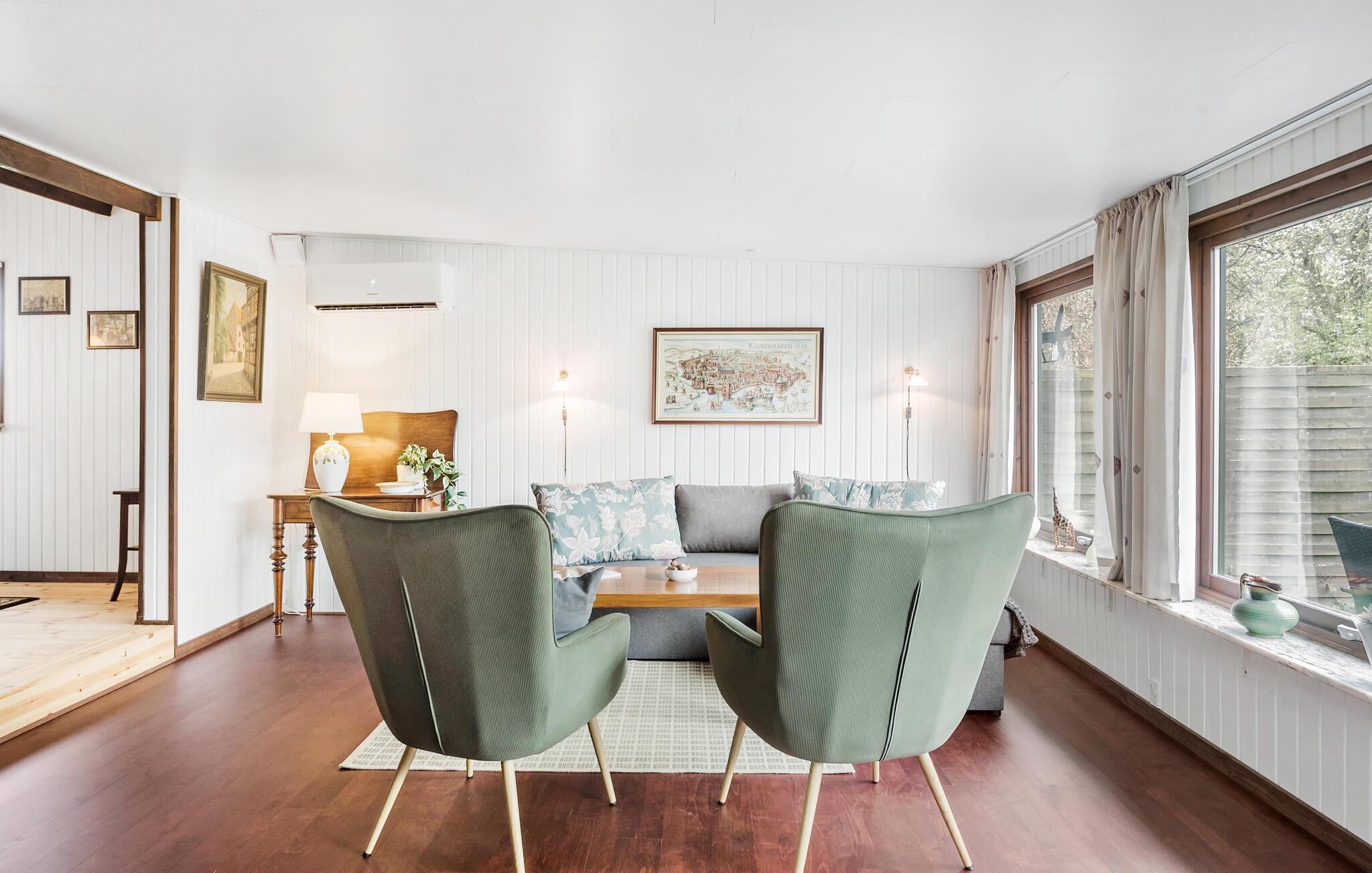 Tag familien under armen og rejs til Sydsjælland, hvor I lidt nord for Vordingborg får en skøn base i dette kompakte feriehus. Indvendigt emmer det af hygge med varme træbjælker, klinkevægge og flere finurlige detaljer, der giver interiøret et hjemligt udtryk og får skuldrene til at sænke sig. På de kølige dage kan I tænde op brændeovnen og nyde dens blide knitren, mens I spiser ved det rustikke træbord eller spiller brætspil i stuen til langt ud på aftenen.