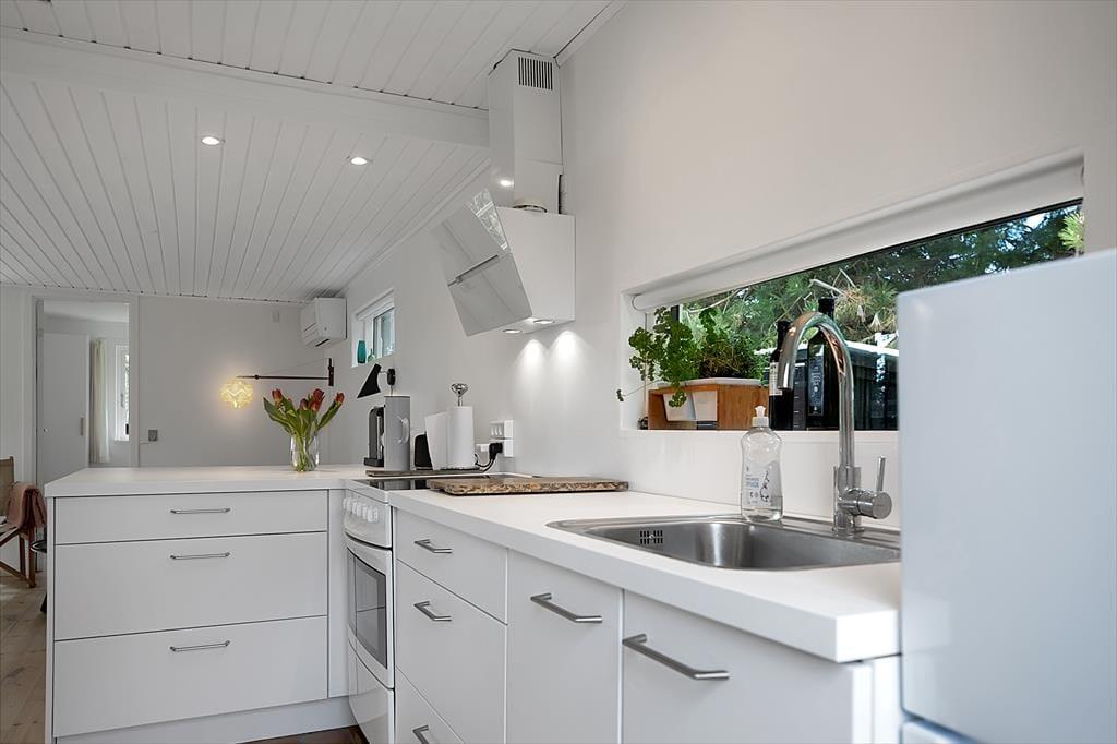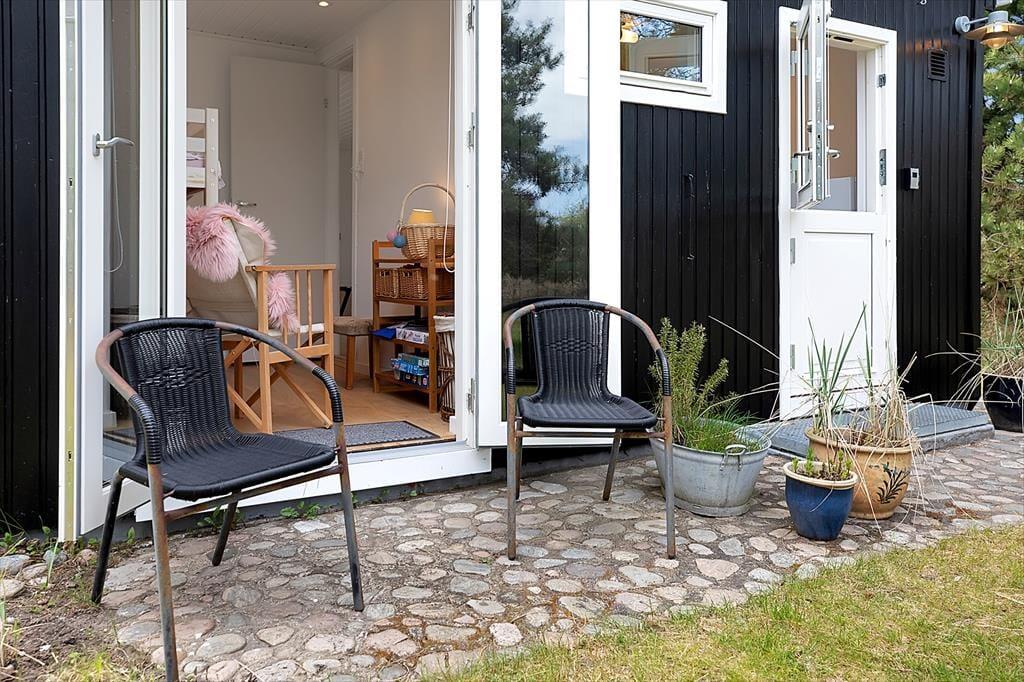 I stuen kan du slappe af med en god bog eller I kan snuppe et slag kort. Dejligt åbent køkken og hyggelig spiseplads. Der er 2 soveværelser, det ene med dobbeltseng, det andet med en enkeltseng, badeværelse med brus og super hyggelig stue. Fra stuen er der udgang til en dejlig terrasse med solsejl, her er det oplagt at nyde solen fra morgen til aften eller komme et par friske fisk på grillen.