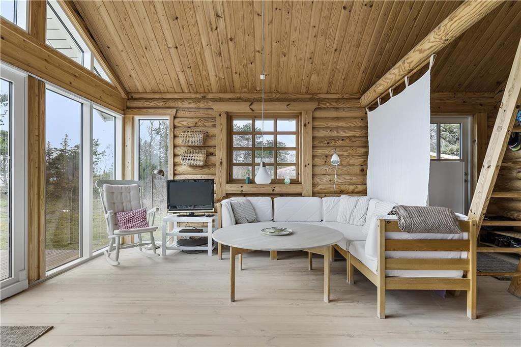 I dette hyggelige bjælkehus har du direkte udsigt til stranden og Sejerø Bugten. Huset ligger fredeligt for enden af en vej og med stier langs stenstranden. Fra sofaen kan du sidde og bare nyde udsigten til havet og vindens susen i træerne mens aftenen falder på. Når du skal i gang med aftensmaden, kan du sætte nogen til at snitte grønt, og mens grydestegen simrer på komfuret, kan du nyde en kold lokal øl. Har du bare brug for ro og fred, måske til at male, skrive eller strikke, så kan du her lade kroppen og sjælen få inspiration eller bare ny energi.