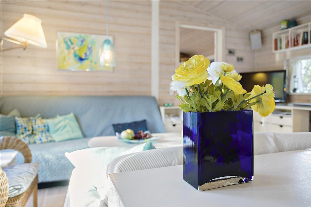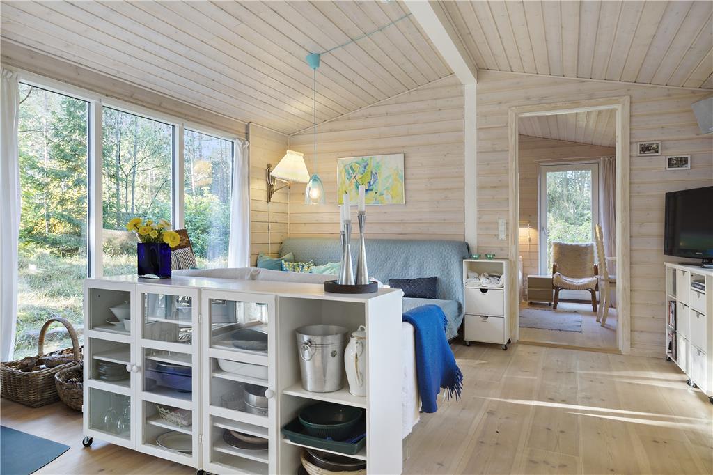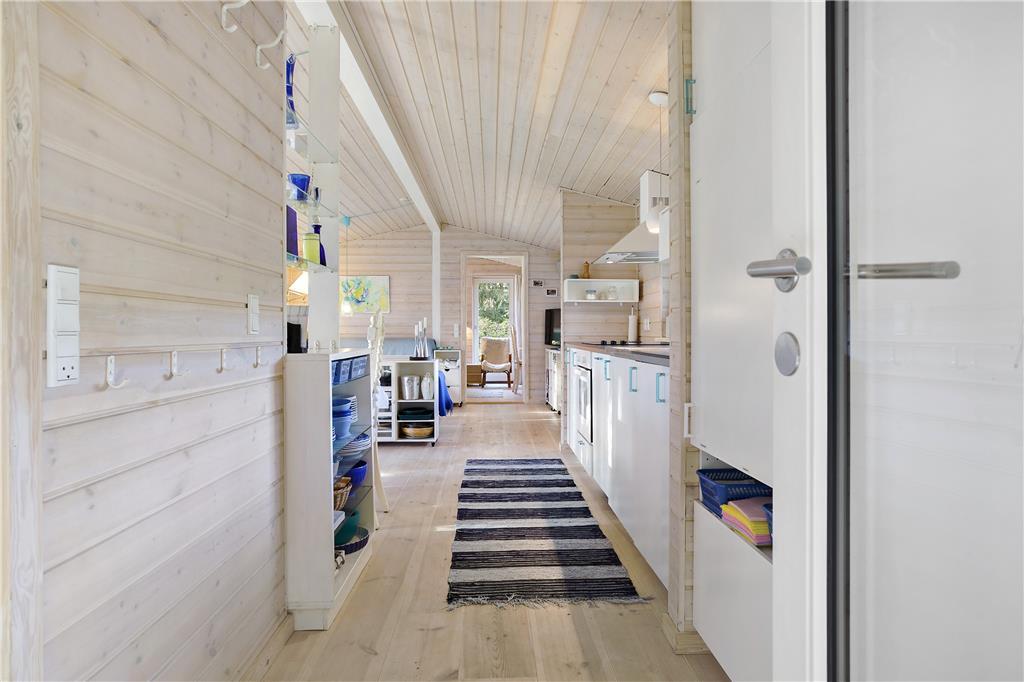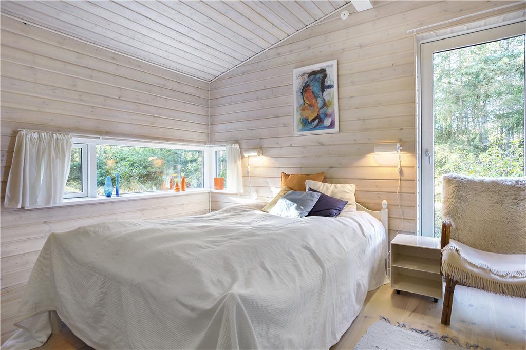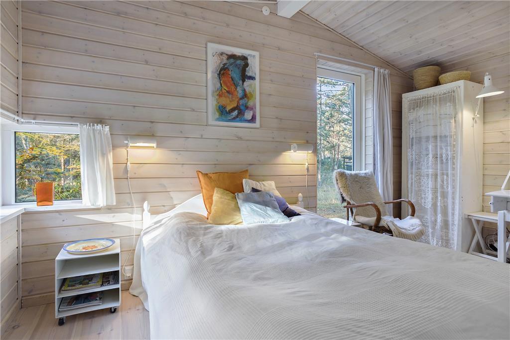 Sommerhuset med lys, luft og lange kig direkte ud i naturen er tegnet af en prisbelønnet arkitekt og rummer under fælles tag - med fælles indgangsparti - til den ene side den nye del med stue, køkken/alrum med brændeovn, soveværelse samt husets badeværelse. Til den anden side er det charmerende, oprindelige hus, der er indrettet med dobbeltseng, en hyggelig siddegruppe og lille køkken, perfekt, hvis man er to par eller har teenagere med. Begge dele af sommerhuset er indrettet for øjet med fine farver og personlige detaljer, der gør en i godt humør.
